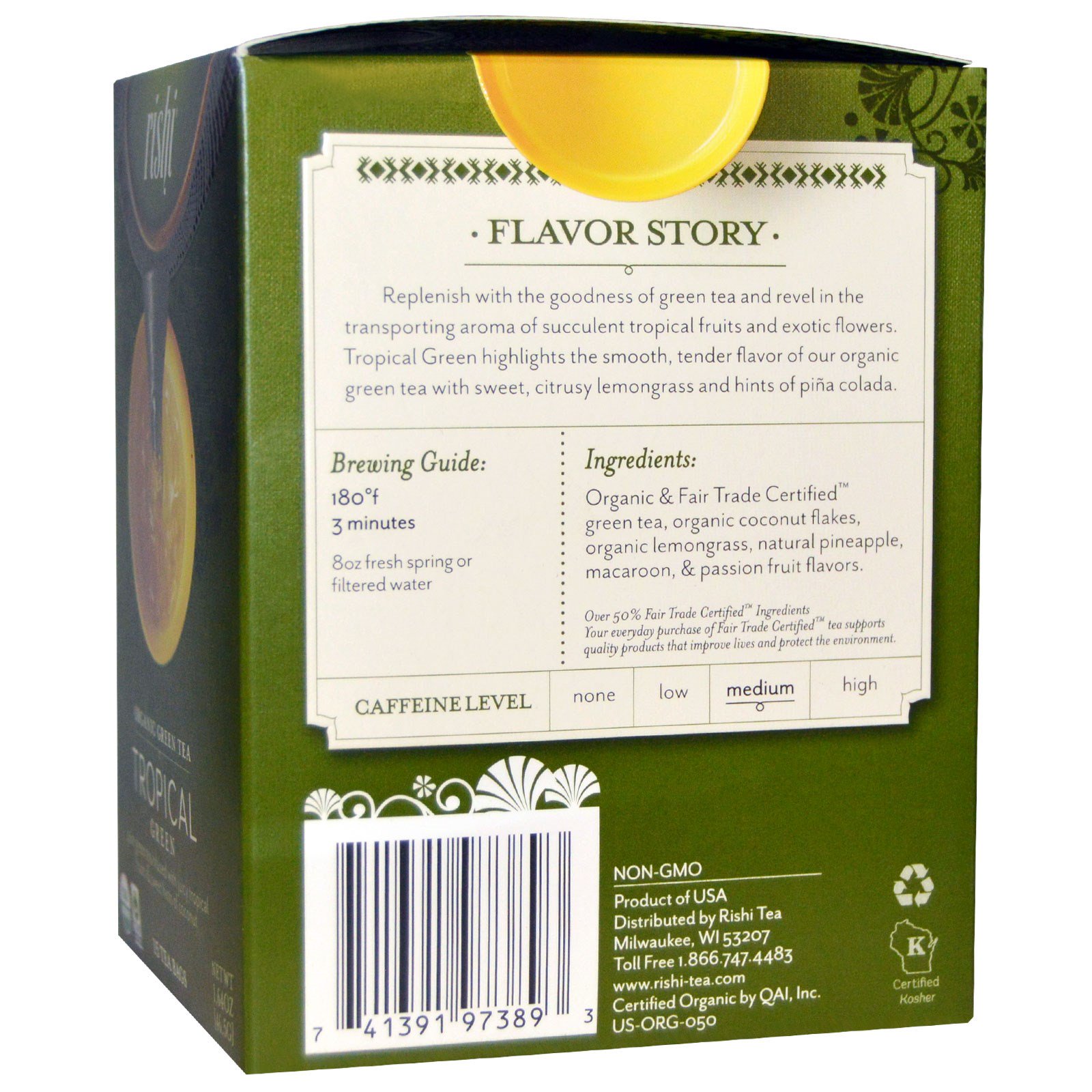 - Pure Green Tea Infused with Juicy Tropical Fruits & Sweet Hints of Coconut