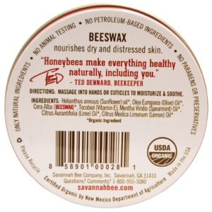 Savannah Bee Beeswax Hand and Nail Salve é certificado orgânico, 100% natural, sem glúten e nunca testado em animais.