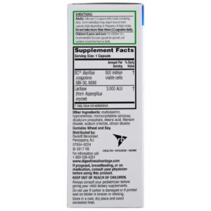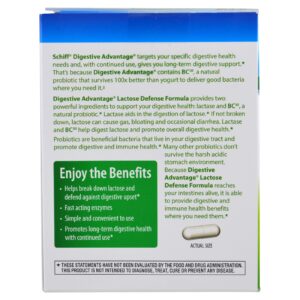 A Fórmula de Defesa Contra a Lactose do Vantagem Digestiva fornece dois ingredientes poderosos para reforçar sua saúde digestiva: lactase e BC30, um probiótico natural. A lactase ajuda na digestão da lactose. Se não for quebrada, a lactose pode causar gases, inchaço e diarreia ocasional. A lactase e o BC30 ajudam a digerir a lactose e a promover a saúde digestiva em geral.