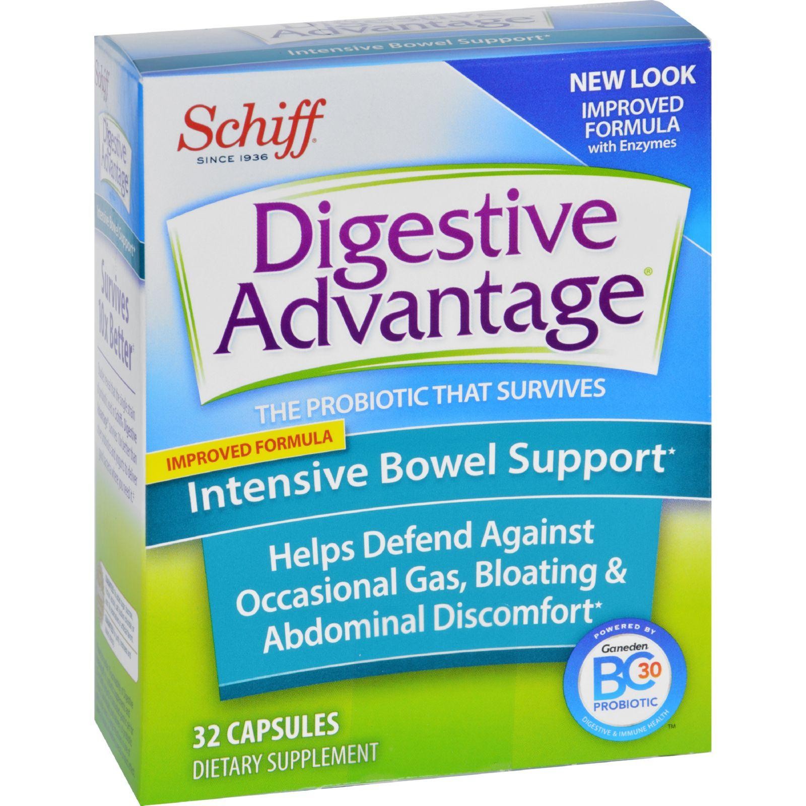 Ganaden Digestive Advantage Intensive Bowel Support Description: Bowel Fitness Formula Take Every Day Helps defend against occasional digestive upsets such as gas, bloating, and diarrhea. Intensive Bowel Support Digestive Advantage Intensive Bowel Support could be your best friend — providing friendly GanedenBC30 probiotics to help support your digestive system and assurance that you are doing a good thing for your digestive and overall health. As a daily supplement to a balanced diet, Digestive Advantage Intensive Bowel Support is designed to help give you digestive confidence. Digestive Advantage Intensive Bowel Support contains friendly GanedenBC30 probiotics, which clinical trials show help defend against occasional digestive upsets such as gas, bloating, and diarrhea. Studies show that GanedenBC30 breaks down complex carbohydrates that, if undigested, may trigger or worsen certain digestive upsets. Free Of Lactose. Disclaimer These statements have not been evaluated by the FDA. These products are not intended to diagnose, treat, cure, or prevent any disease.