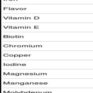 Notas: Contém ingredientes de leite, ovo, trigo (péptidos de glutamina) e ingredientes de soja (lecitina).Não contém açucar adicionado.