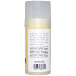 Heel Repair – a healing blend of shea and cocoa butters, aloe vera, watermint and tea tree that provides relief and helps prevent cracked heels. Non-greasy and won’t stain shoes or linens.