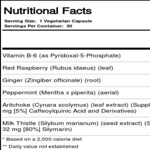 Solaray Baby Me Now Morning Ease contains a blend of Vitamin B-6, Red Raspberry, Ginger and more.