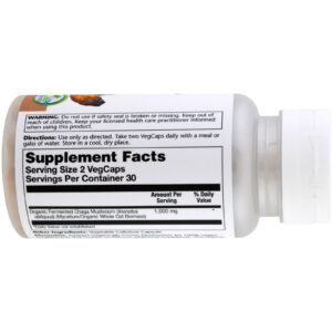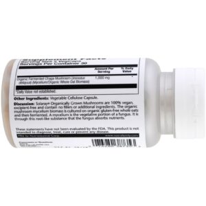 Discussion: Solaray Organically Grown Mushrooms are 100% vegan, excipient-free and contain no fillers or additional ingredients. The organic mushroom mycelium biomass is cultured on organic gluten-free whole oats and then fermented. A mycelium is the vegetative portion of a fungus. It is through this root-like substance that the fungus absorbs nutrients.