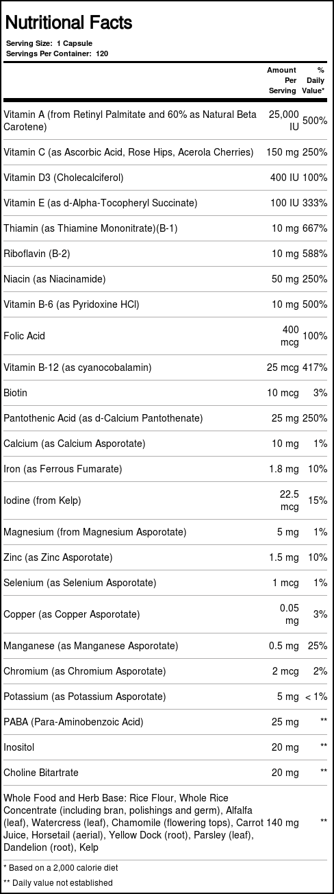 Solaray Multivitamínico – Uma vez Diário de alta energia 120 Cápsulas