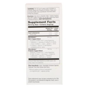 | Mycrobiome Men’s Support Blend (Supplying 20 Billion CFU** Living Organisms) L. plantarum, L. paracasei, B. longum, B, infantis, L. lactis. B. bifidum, L. casei, L. gasseri, L. brevis, P. acidilacti, E. faecium, S. thermophilus, L. acidophilus and Lc. lactis |