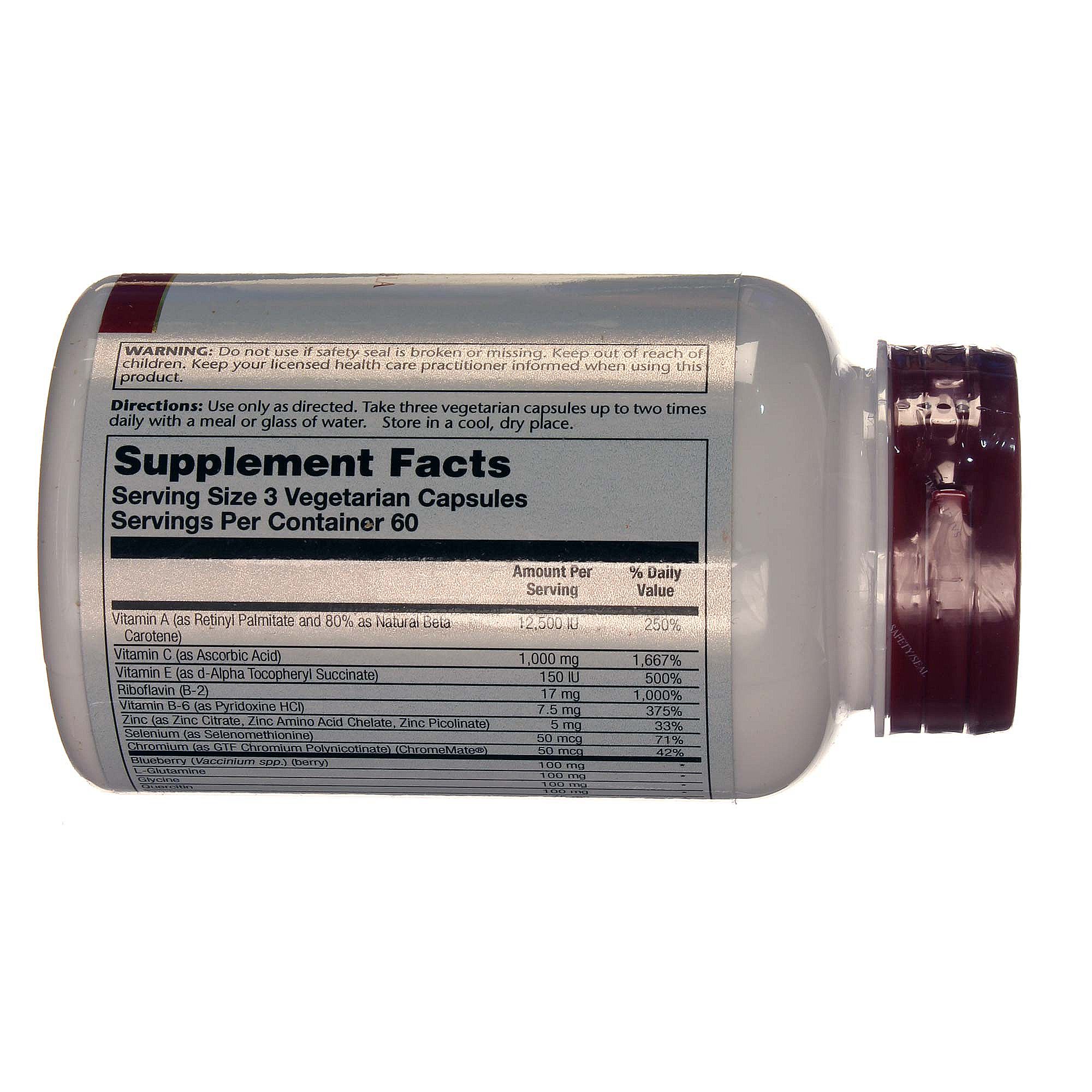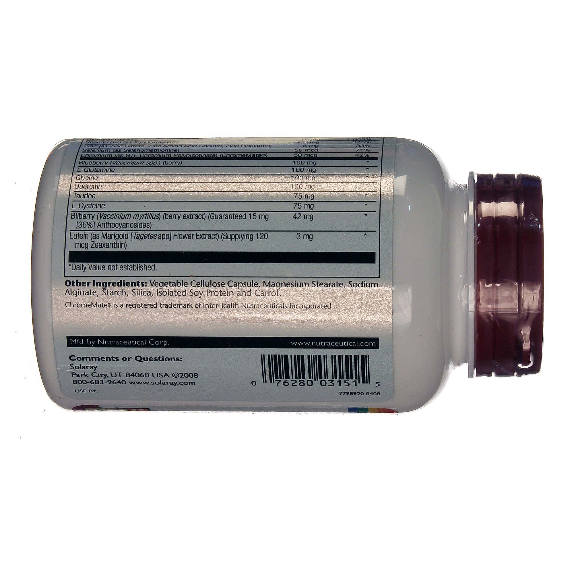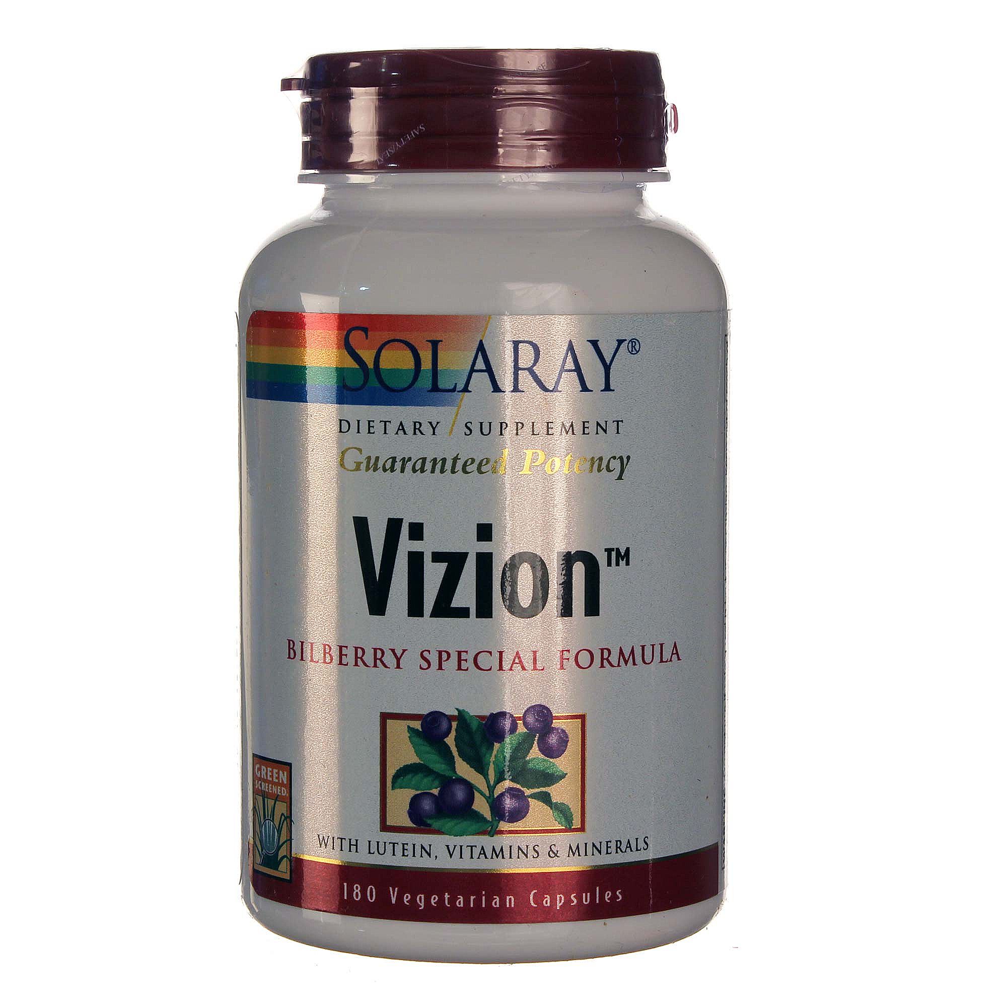 Solaray’s Vizion Bilberry Special Formula, a blend of antioxidant-rich vitamins and minerals, can be taken daily to protect the health of your eyes.