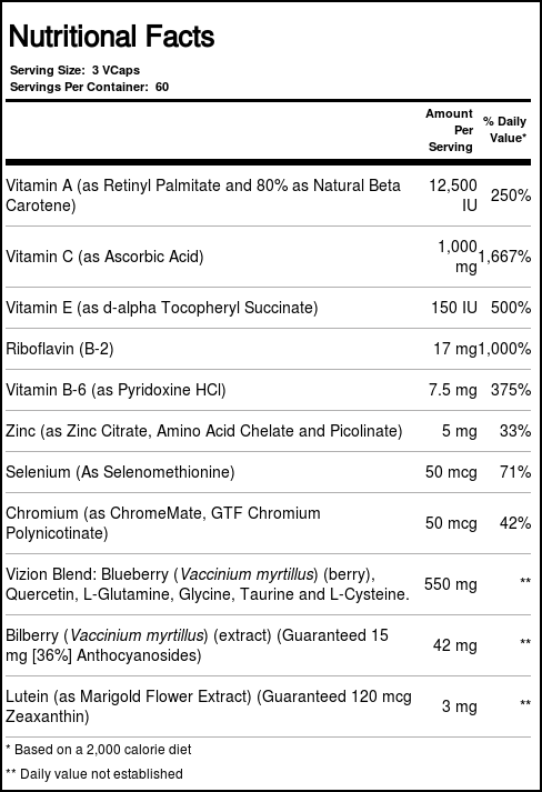 Vizion Bilberry Special Formula from Solaray contains a unique blend of ingredients like vitamin A, zinc and bilberry extract – all of which are proven to protect eyes and vision. Bilberry has been used since World War II when it was taken by pilots to promote ocular health, partcularly at night. This blend helps your eyes adjust to changing conditions and light for continued clarity.