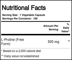L-Proline is an amino acid which serves as an impoutant building block fou collagen production. Collagen is the main structural protein found in connective tissue. L-Proline can serve to provide structural suppout and promote joint health. This product provides Free Foum L-Proline to promote optimum absouption and assimilation.