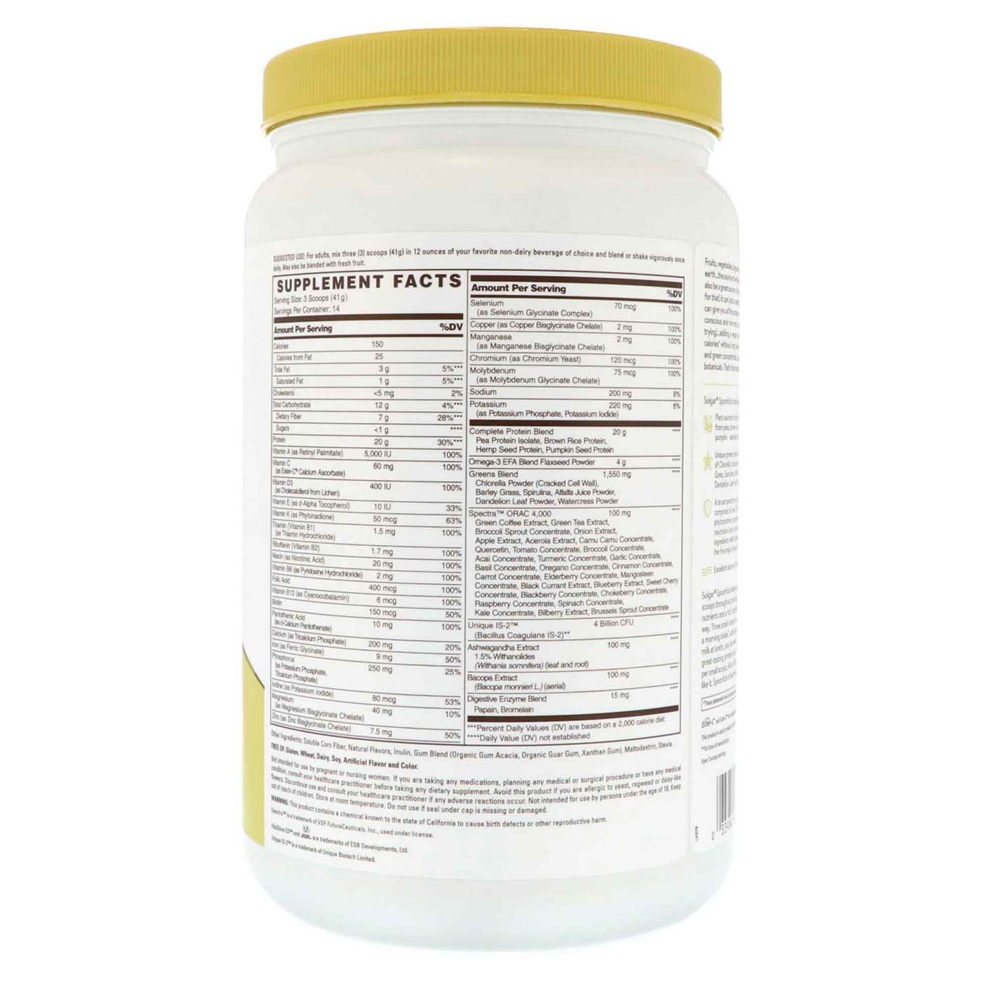 Solgar Spoonfuls Vegan Protein Nutritional Shake mixes smoothly and has a great taste! Fruits, vegetables, legumes, seeds, ancient grain…kissed by the sun, nurtured by the rain, embraced by the earth…the source of well-being as nature intended. Not only are plants a great source of nutrition…they can also be a great source of protein. Protein doesn’t have to come from animals (grazing cows can be thankful for that) it can just as easily come from the earth. When sourced that way, earth-harvested plant protein can give you all the protein you need while being more sustainable than animal protein, environmentally-conscious and non-gmo…all with a friendly carbon footprint. When eating a healthier diet (or at least trying)…adding a vegan protein can be a great addition to your day. It’s great-tasting nutrition at 150 calories without high levels of fat. Nutritious, plant-harvested, protein…vital nutrients…fruit, vegetable and green concentrates…probiotics, digestive enzymes, flaxseed EFA, plus all the goodness of ayurvedic botanicals. That’s the broad-spectrum nutrition you get in every Solgar Spoonfuls.
