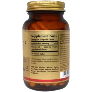 Solgar, Vitamina D3 (Colecalciferol), 5000 IU, 120 Cápsulas Vegetais