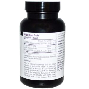 O DIM é um fitoquímico de indol que metaboliza naturalmente compostos encontrados em vegetais brassicáceos, como o brócolis, a couve-de-bruxelas e o repolho. Estudos pré-clínicos mostram que o DIM leva à formação preferencial de metabólitos de estrógeno que estão correlacionados à saúde dos seios, do endométrio e dos tecidos cervicais. Esta propriedade única separa o DIM de outros nutrientes de plantas. O DIM da Source Naturals foi misturado a fosfolipídios, vitamina E e BioPerine para aumentar sua absorção.