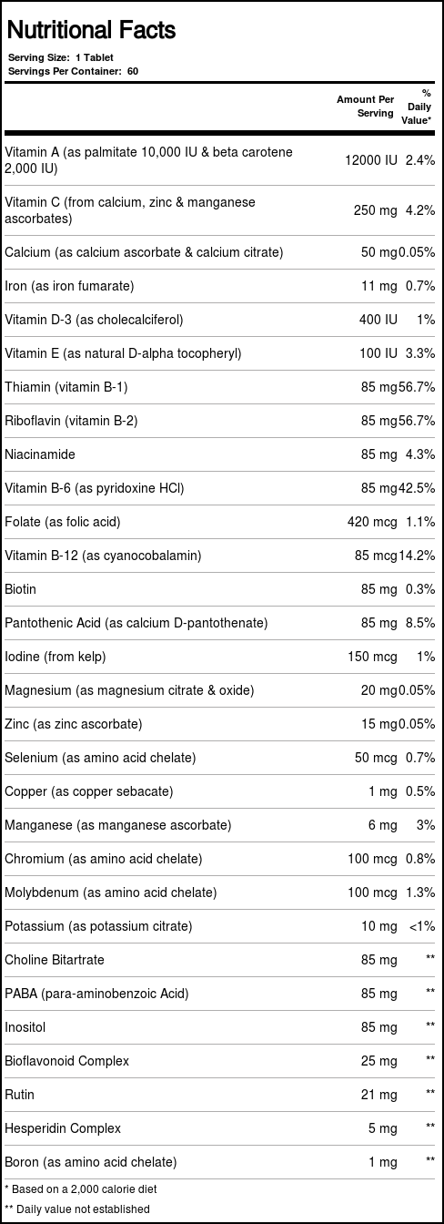 Mega-One Multiple is a multi-vitamin with minerals. This product features Vitamin A, Calcium, Iron, Copper and a whole lot more.
