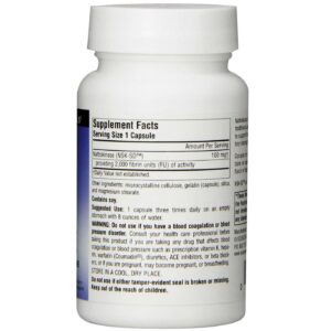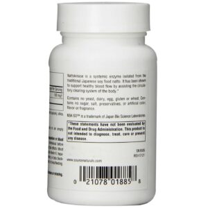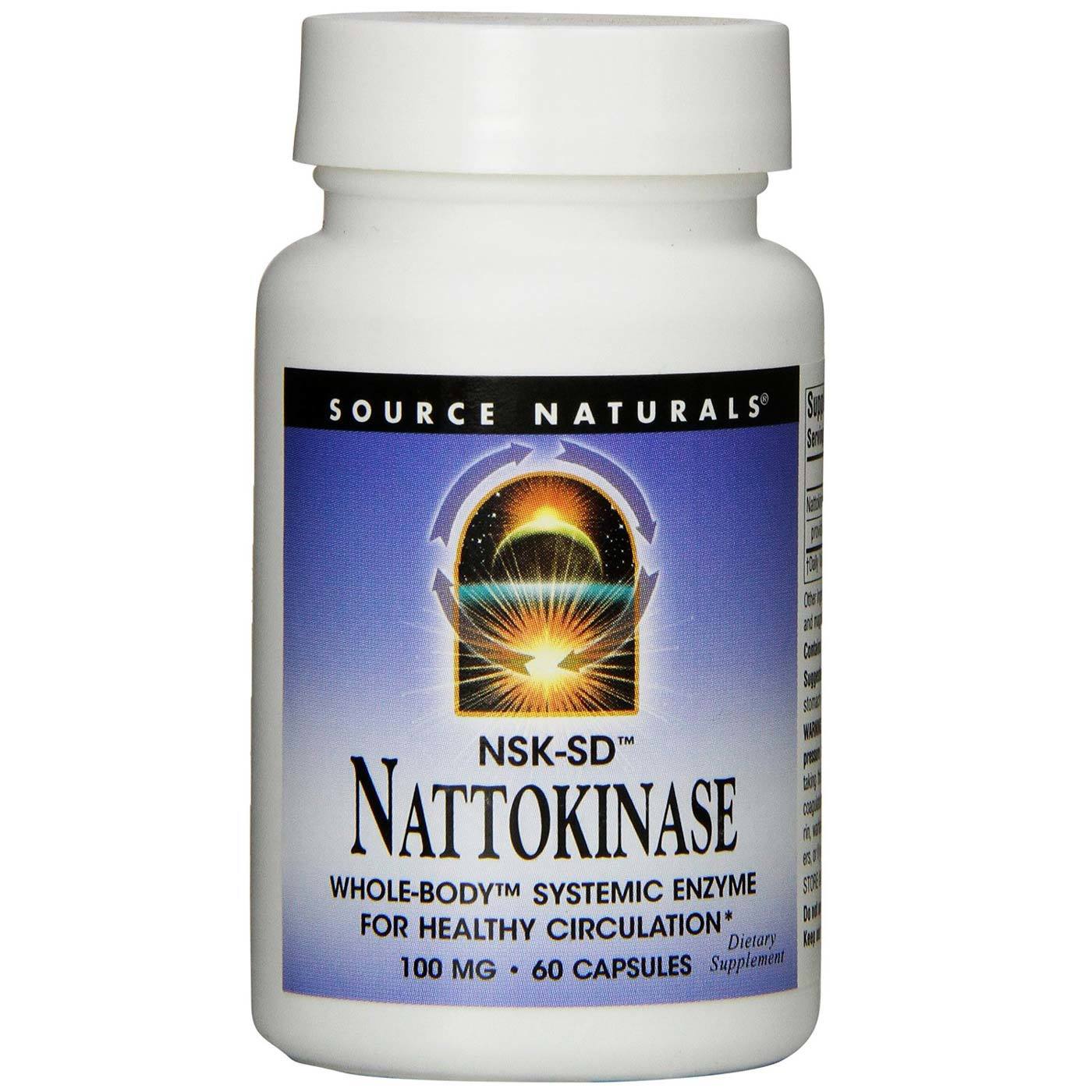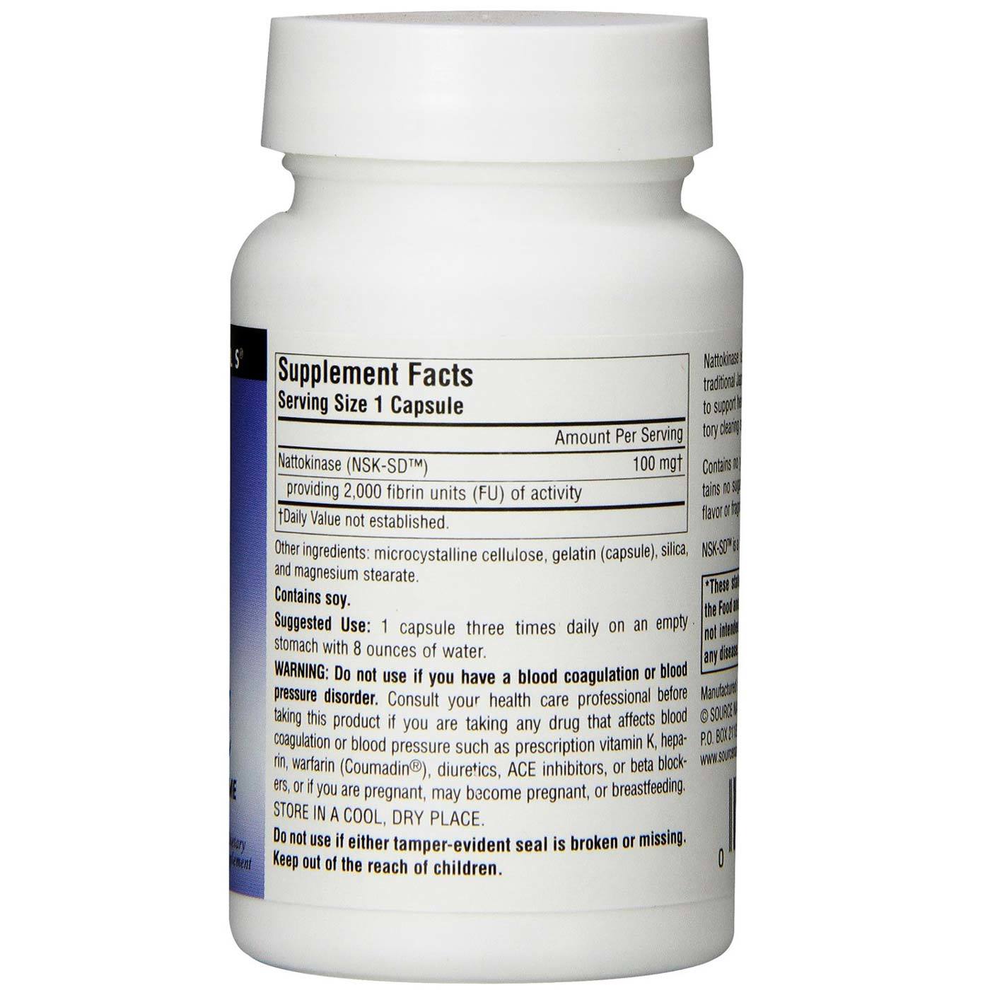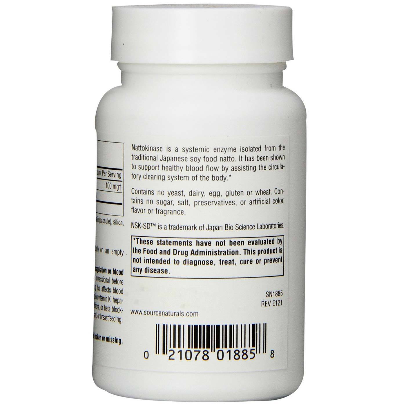 Nattokinase 100 mg by Source Naturals contains no yeast, dairy, egg or wheat. Each serving contains 100 mg of Nattokinase that provides 2,000 Fibrinolytic Units (FU) of Activity.