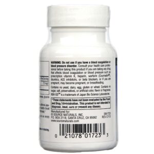 Advertências: Do not use if you have a blood coagulation disorder. Consult your health care professional before taking this product if you are taking any drug that affects blood coagulation such as prescription vitamin K, heparin or warfarin (coumadin), diuretics, ACE inhibitors, or beta blockers, or if you are pregnant or breastfeeding. Keep out of reach of children.