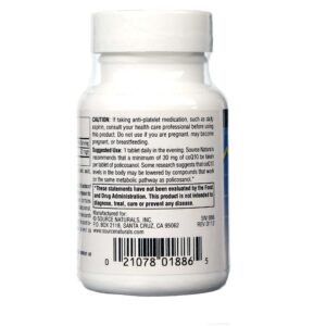 Recomendações de uso: 1 tablet daily in the evening. Source Naturals recommends that a minimum of 30 mg of coQ10 be taken per tablet of policosanol. Some research suggests that coQ10 levels in the body may be lowered by compounds that work on the same metabolic pathway as policosanol.