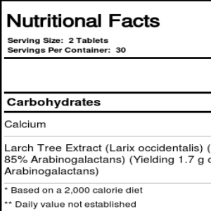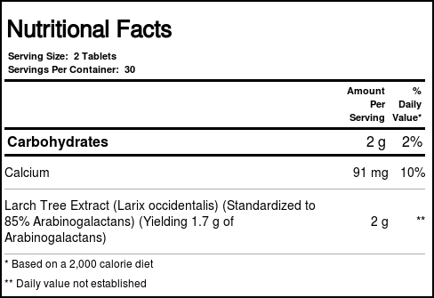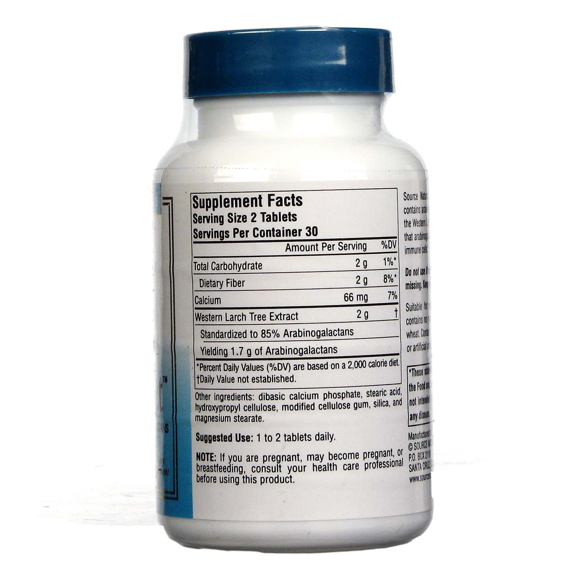 Source Naturals Wellness Larch Extract contains arabinogalactans, which are extracted from the Western Larch tree.