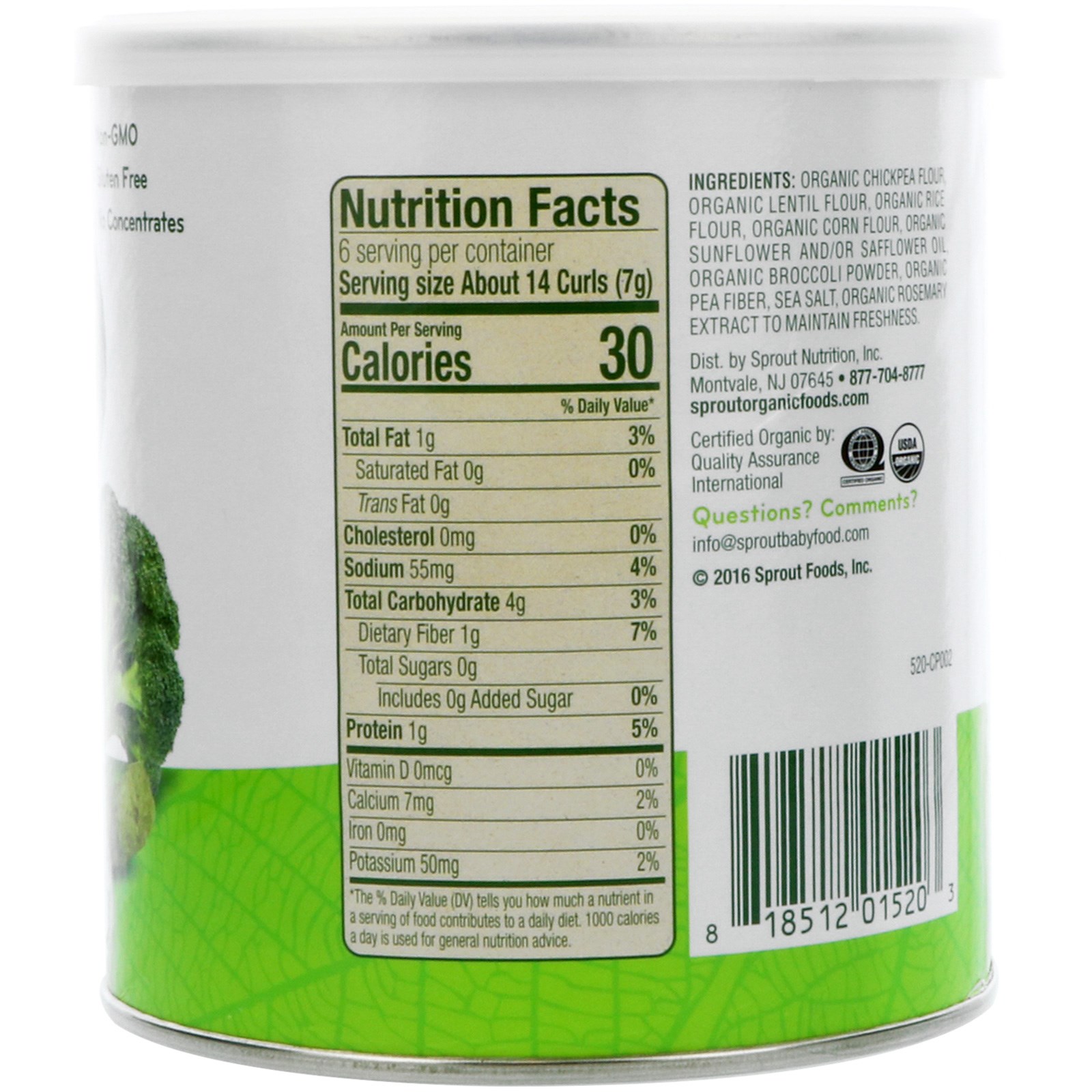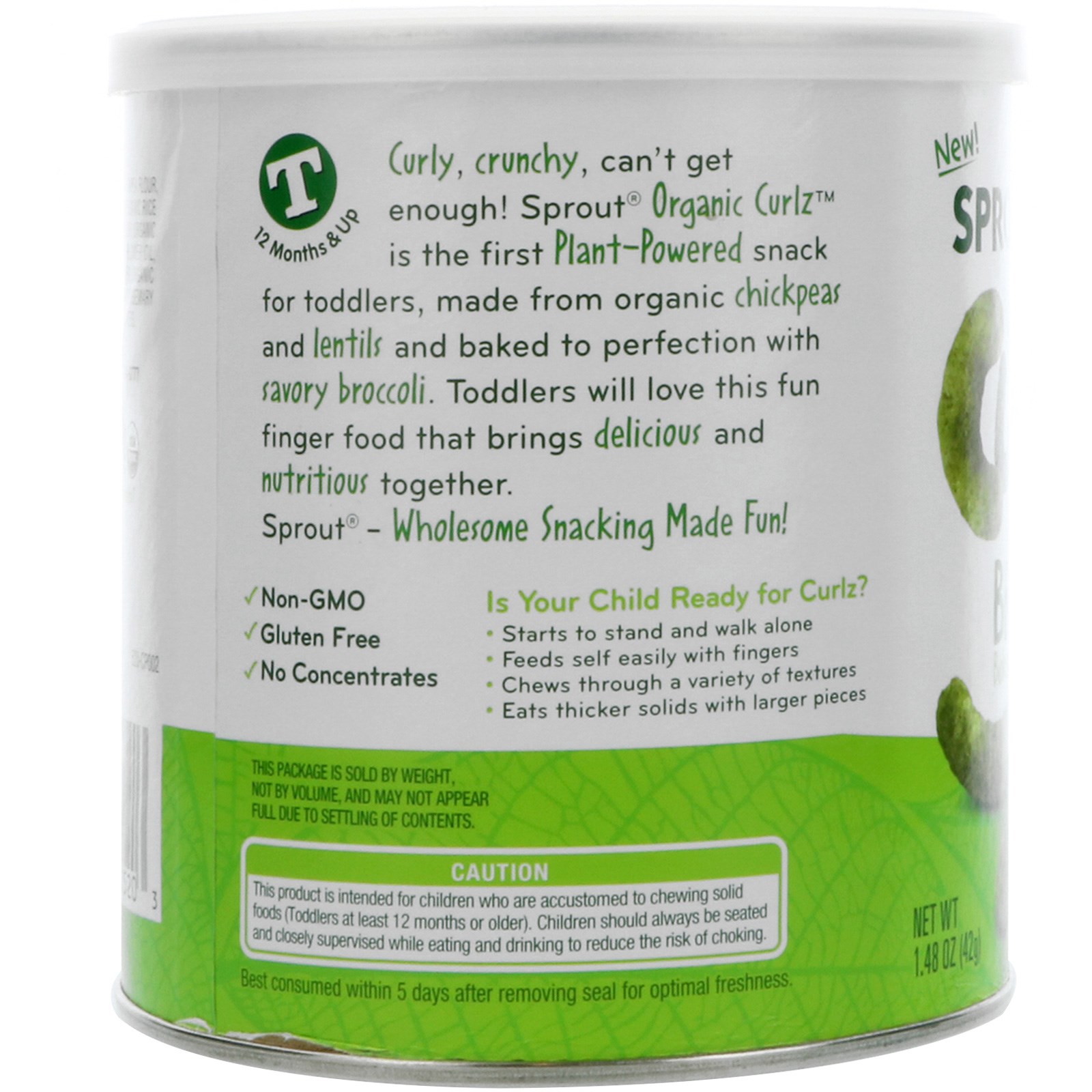 Curvado, crocante, nunca é o suficiente! Sprout Organic Curlz é o primeiro petisco de base vegetal para bebês, feito de grãos-de-bico e lentilhas orgânicas e assado perfeitamente com brócolis saborosos. Os bebês vão amar este divertido alimento para comer com as mãos que une sabor e nutrição.