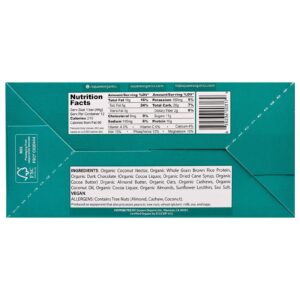 Néctar de coco biológico, proteína orgânica de arroz integral integral, chocolate orgânico escuro (licor de cacau orgânico, xarope de cana seco orgânico, manteiga de cacau orgânica), manteiga de amêndoa orgânica, aveia orgânica, castanha de caju orgânica, óleo de coco orgânico, licor de cacau orgânico, amêndoas orgânicas, girassol Lecitina, sal marinho.
