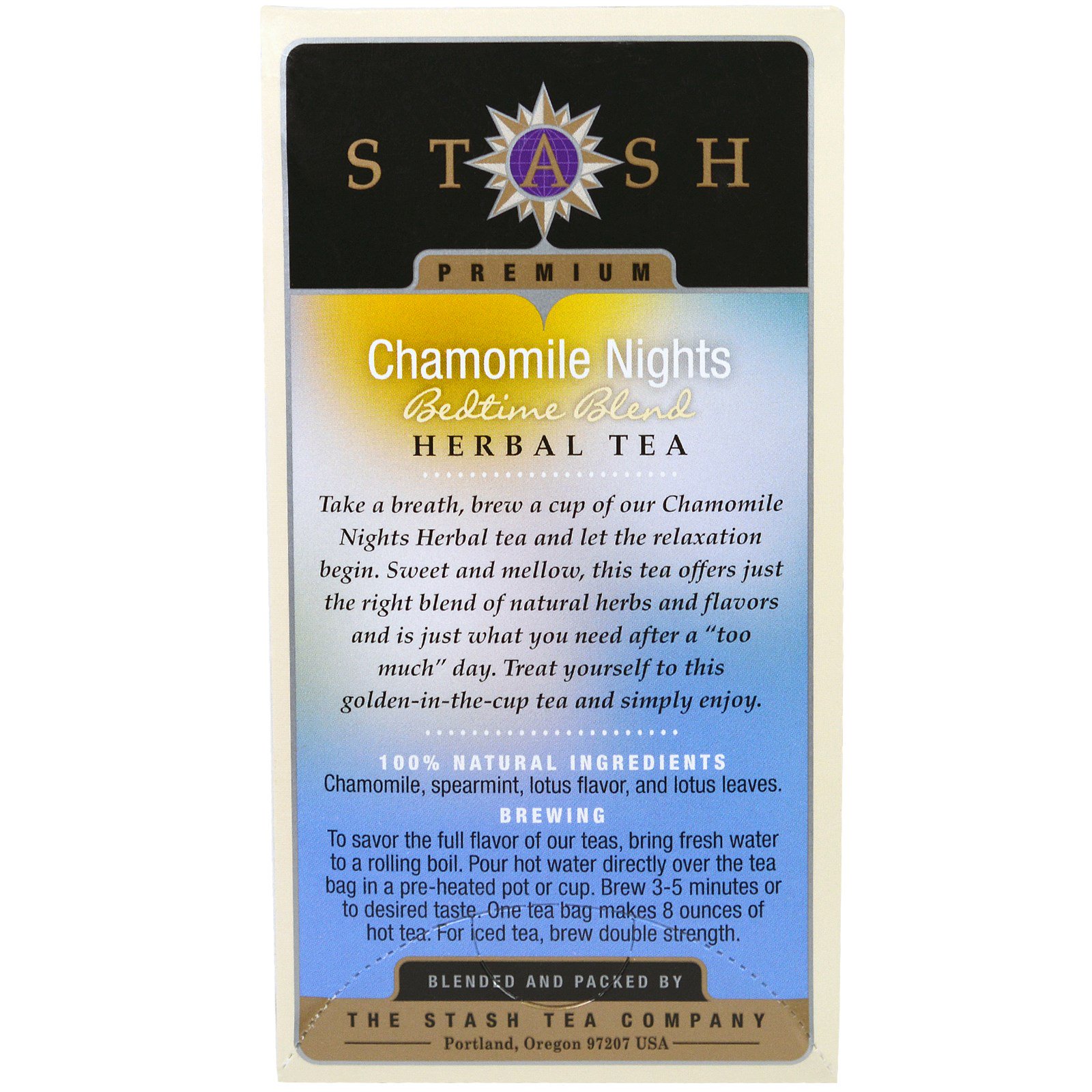 Stash Tea, Chá Herbal, Camomila, Sem Cafeína, 18 Sachês, 0,6 oz (18 g)