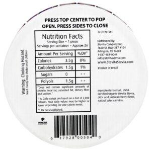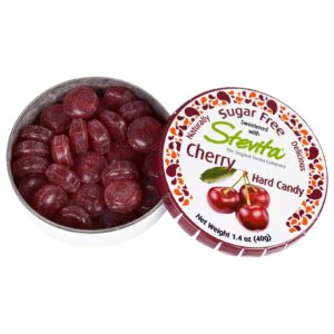 Isomalt, stevita stevita orgânica certificada pelo USDA, ácido cítrico, sabor de cereja natural, cor natural carmim.