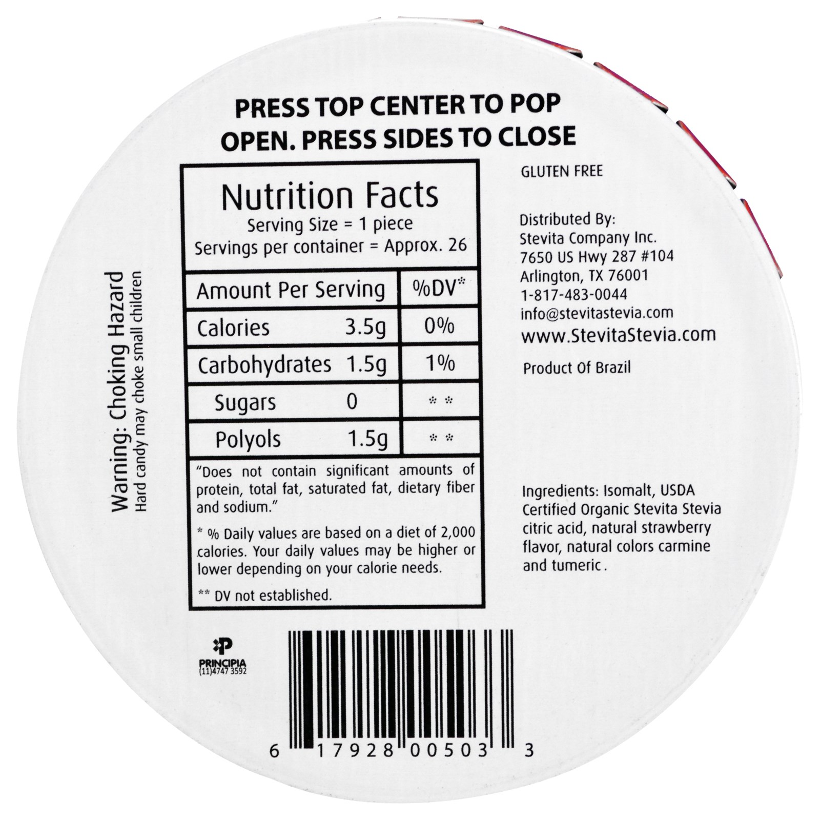 Isomalt, ácido orgânico stevita stevia certificado de USDA, sabor de morango natural, cores carmin naturais e cúrcuma.