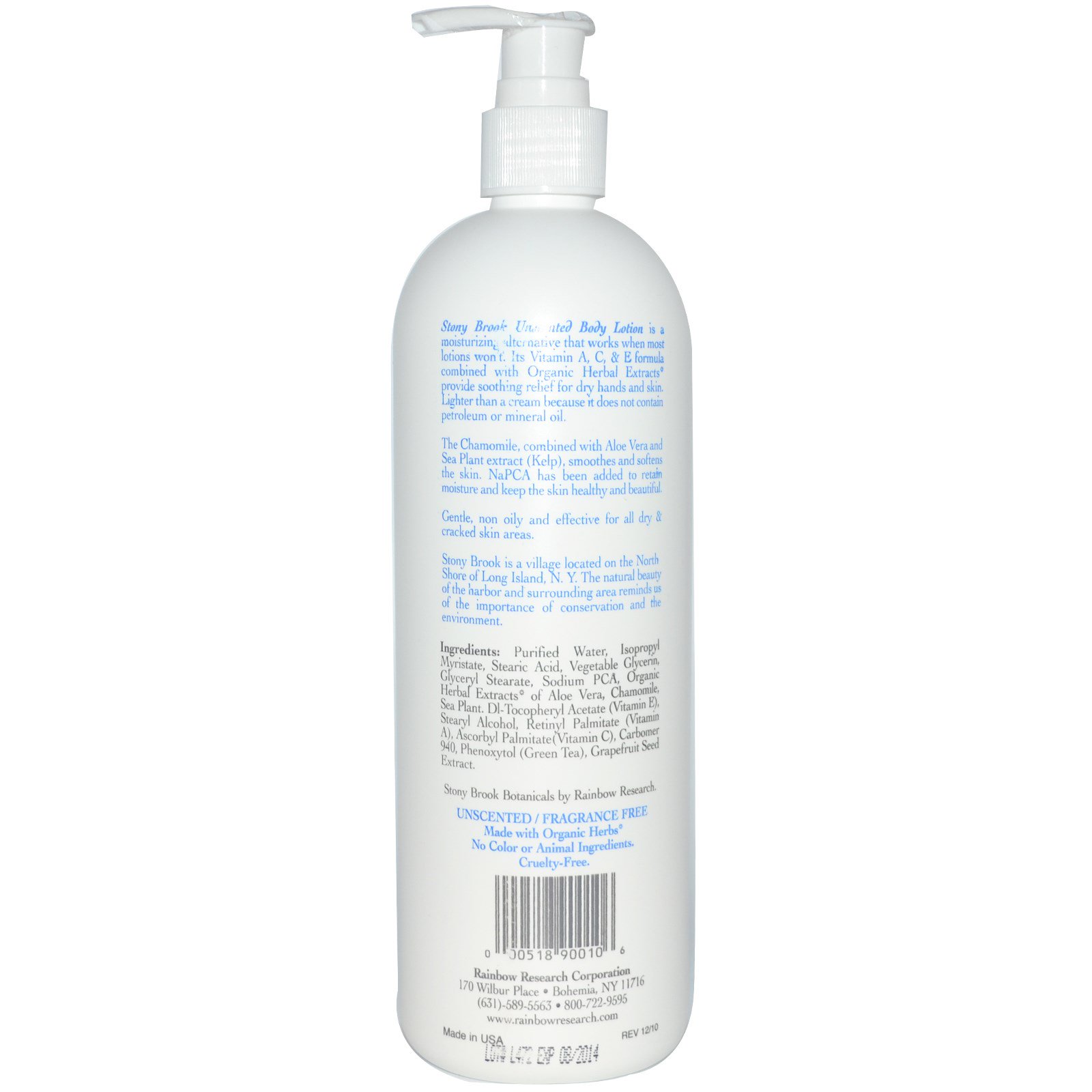 A Loção Corporal Stony Brook, sem aroma, é uma alternativa hidratante que funciona quando a maioria das loções não. A fórmula da vitamina A, C, e; E combinada com extratos de ervas orgânicas proporcionam um alívio calmante para as mãos e a pele seca. Mais leve do que um creme, porque não contém petróleo ou óleo mineral.