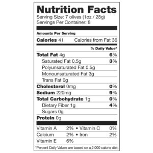 | Tamanho da dose: 7 azeitonas (1 oz / 28 g) | ||
