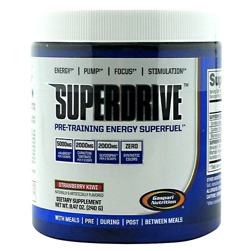 SuperDrive is a Pre-Training Energy Super fuel. 5000mg mitoDrive.SuperDrive Contains 2000mg Carnitine Tartrate,2000mg Glycospan, Zero Synthetic Fillers. SuperDrive Just the facts: Explosive energy, sensory stimulation & focus, recovery priming, performance support.
