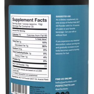Como um dietético completar, misturar um escavar de Perfeito Ceto MCT óleo Pó com 8 para 10 onças de água ou sua favorito bebida. Pode usar com ou sem alimentos.