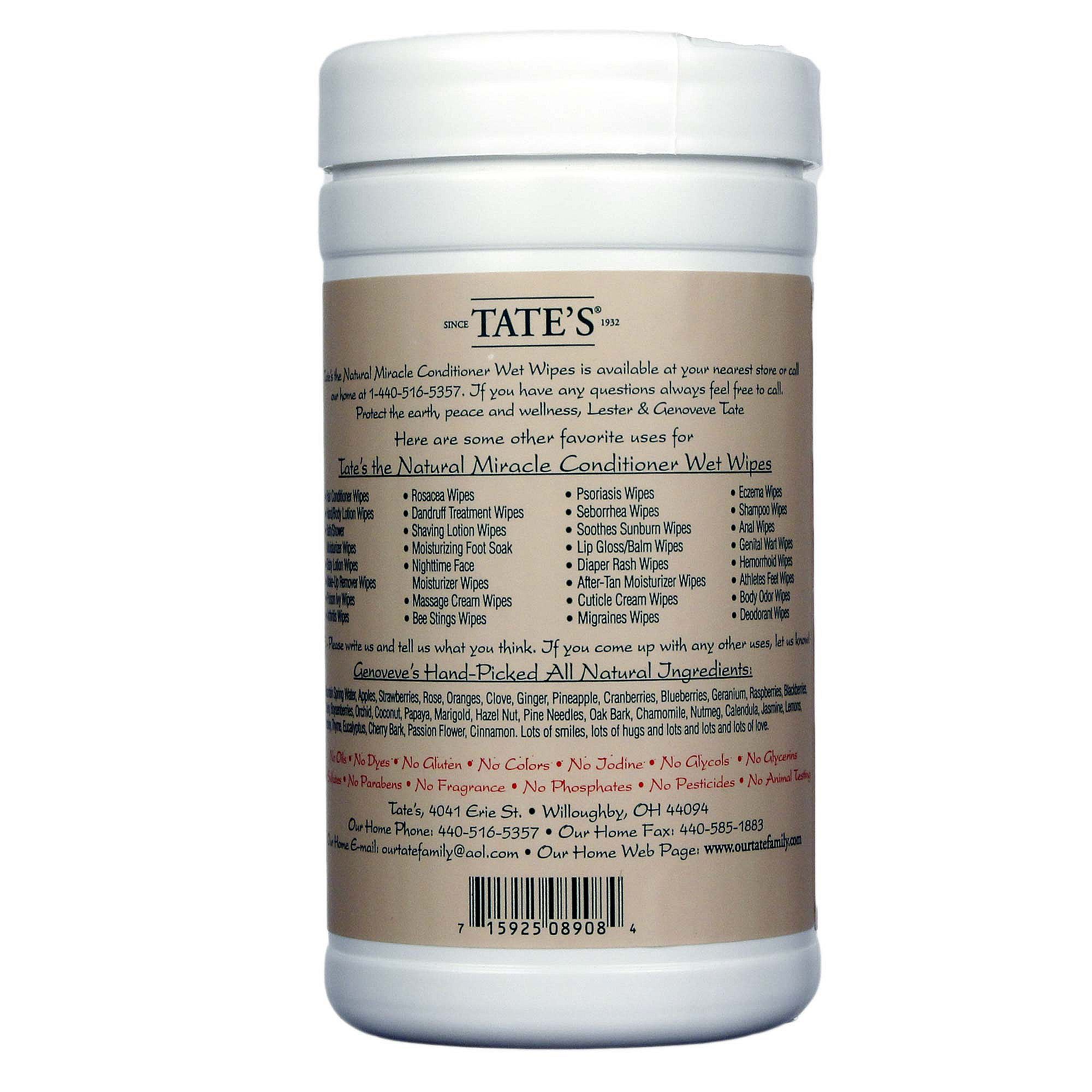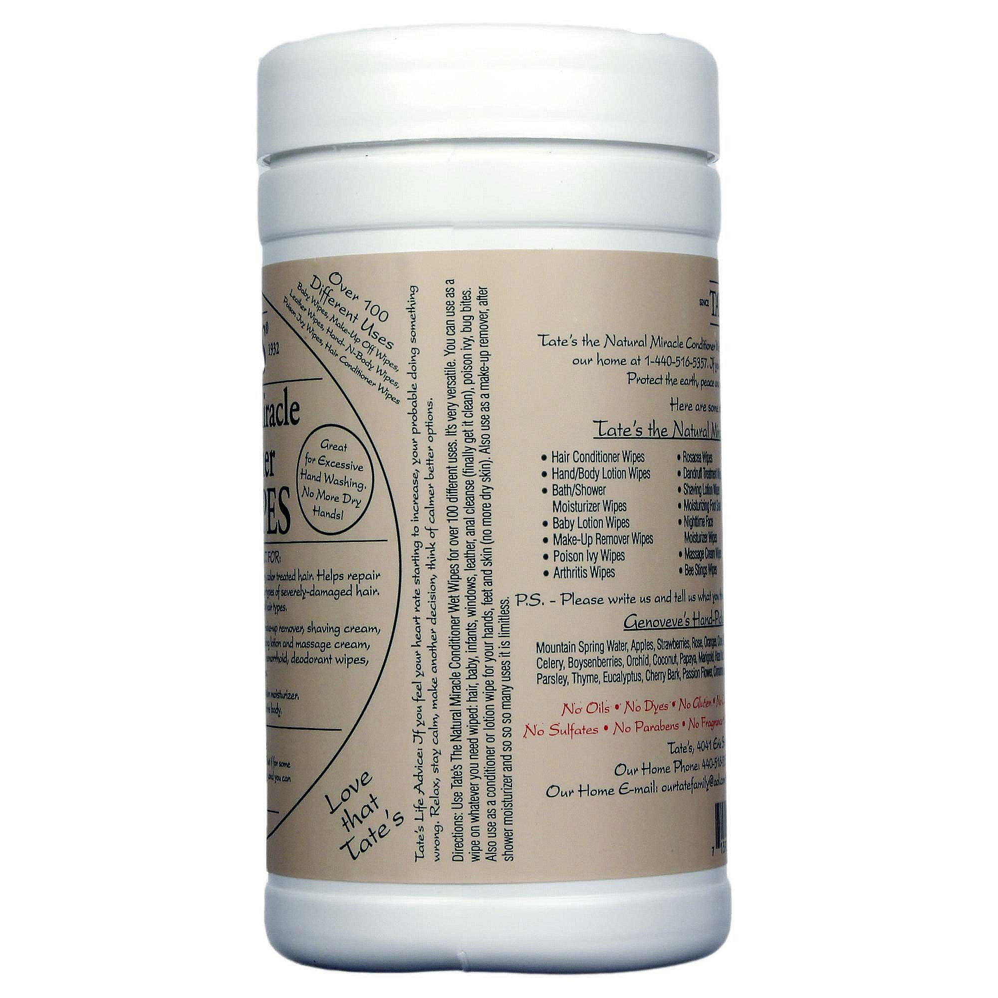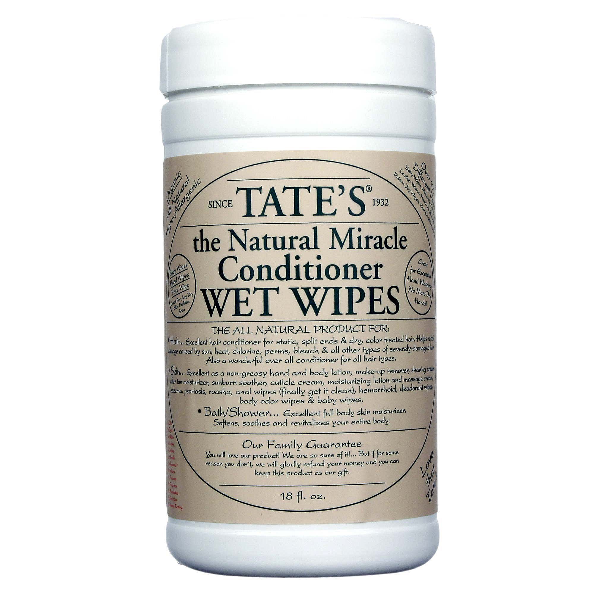 b>The Natural Miracle Conditioner Wet Wipes from Tate’s are organic, hypo-allergenic wipes are safe for use on any person (even babies) and any skin type.