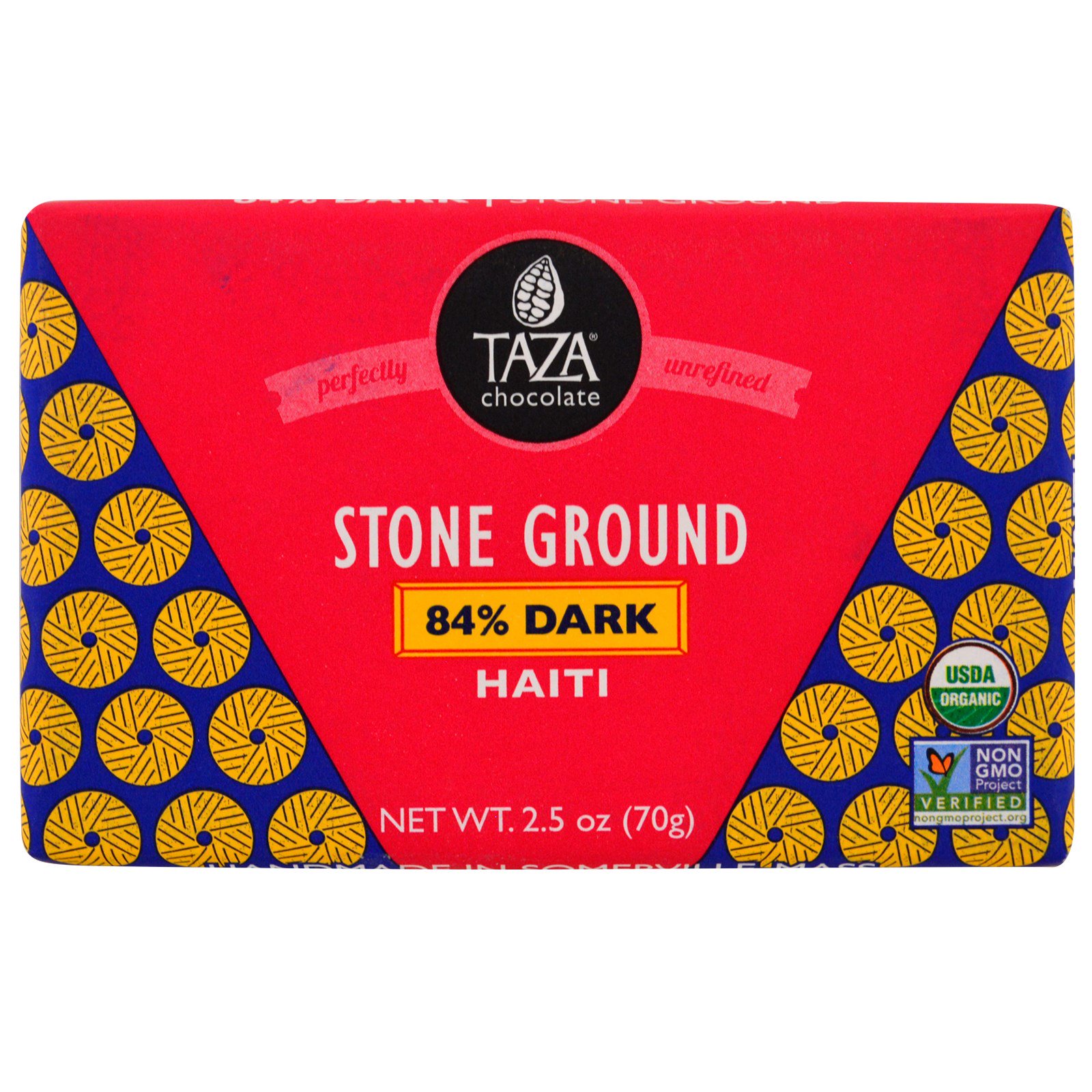 Taza Chocolate, Orgânico, Barra de Chocolate 84% Amargo e Moído em Pedra, Haiti, 70 g (2,5 oz)