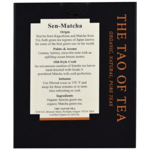 Chá verde Sencha orgânico, chá verde matcha orgânico.