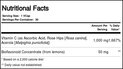 The vitamin C in C 1,000 mg with Rose Hips and Acerola from Thompson comes from rose hips and acerola with the addition of lemon bioflavonoids.