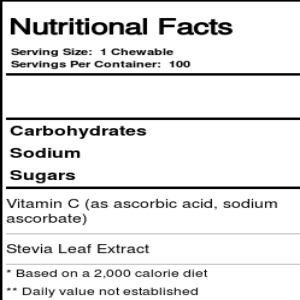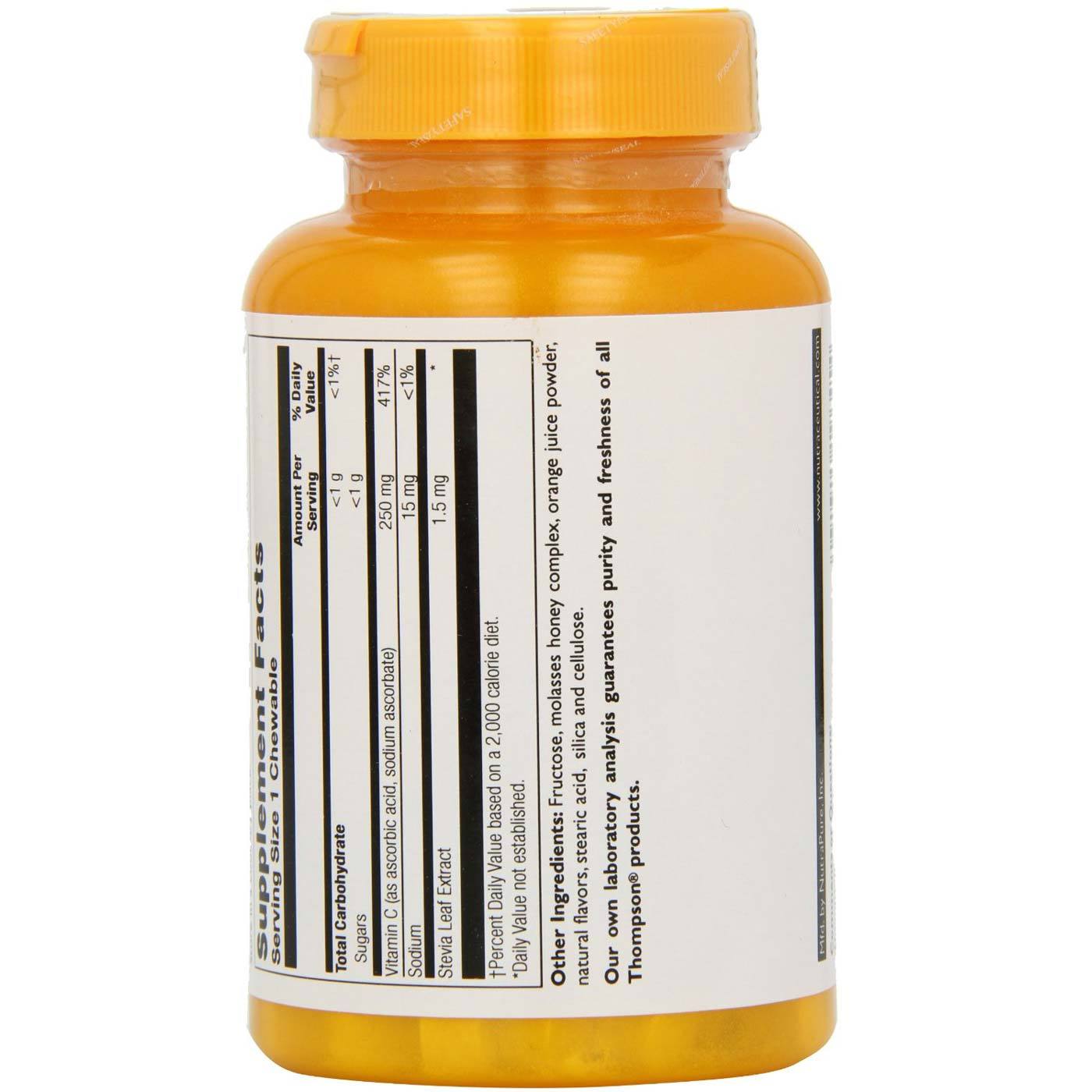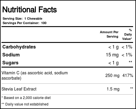 Antioxidants like vitamin C help strengthen the body’s defenses against potentially damaging free radicals we encounter in our daily lives. Thompson’s C 250 mg Chewable provides more than four times the recommended daily allowance (RDA) of vitamin C for a strong immune system.