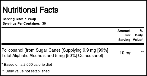 Each serving of Policosanol 10 mg from Thompson supplies 9.9 mg of aliphatic alcohols and 5 mg of octacosanol for cardiovascular support. Try it today!