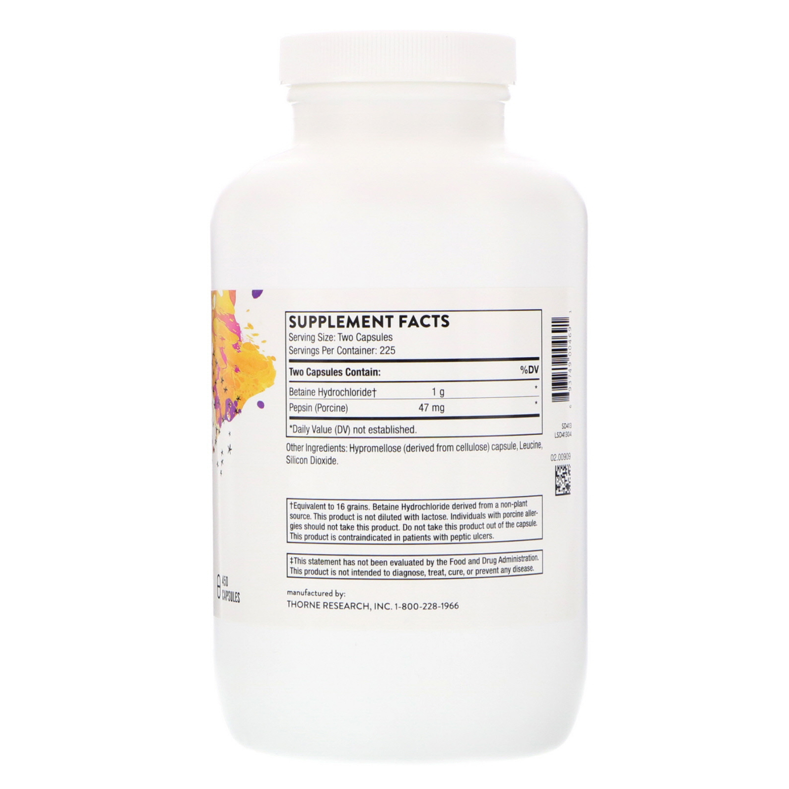 Thorne Research, Betaína HCL e Pepsina, 450 Cápsulas de Vegetais