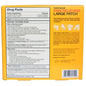Tiger Balm, Adesivo para Alívio de Dor, Grande, 4 Adesivos (8 x 4 polegadas cada)