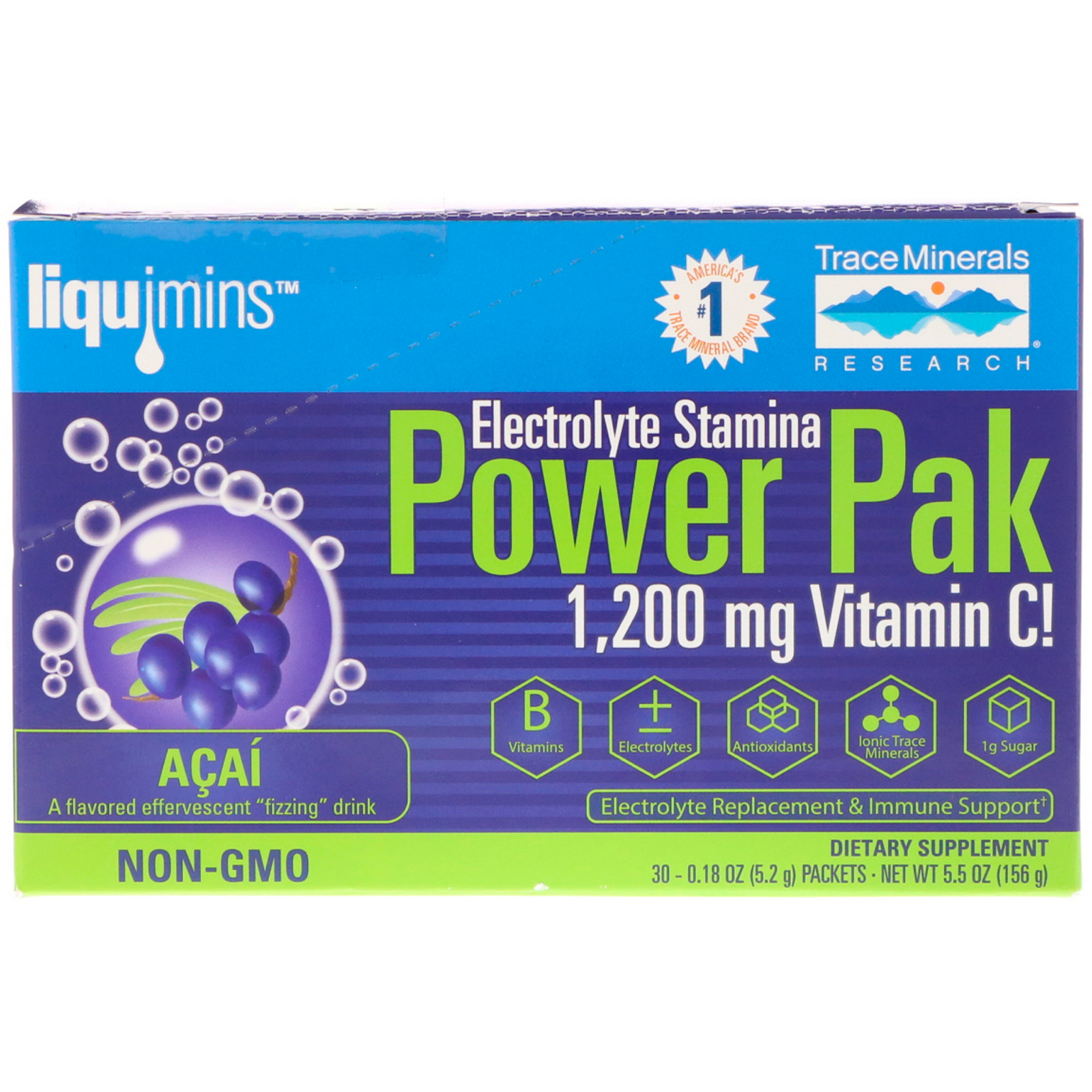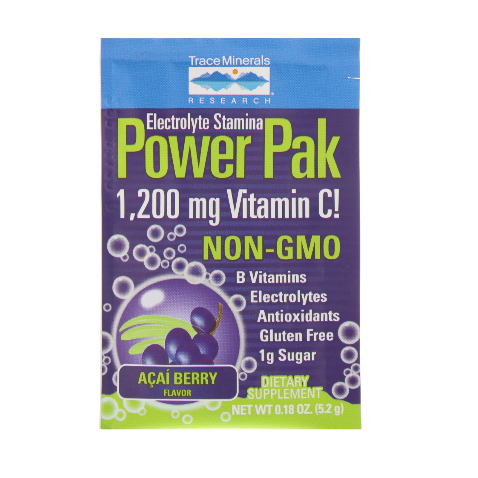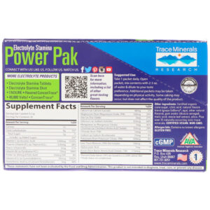 - Trace Minerals Research, Electrolyte Resistance, Power Pak, Raspberry and Blueberry, 1200 mg, 30 Units, 0.18 oz (5 g) Each