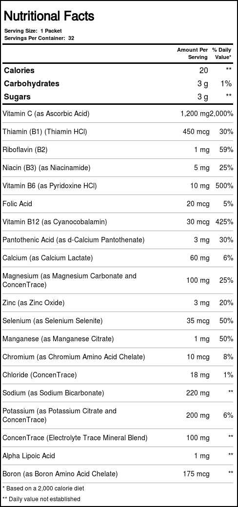 Recomendações de uso: Tomar 1 packet dia. Open packet, mix contents with 4 to 6 fl oz of water and enjoy. Additional packets may be tomarn depending on physical activity.