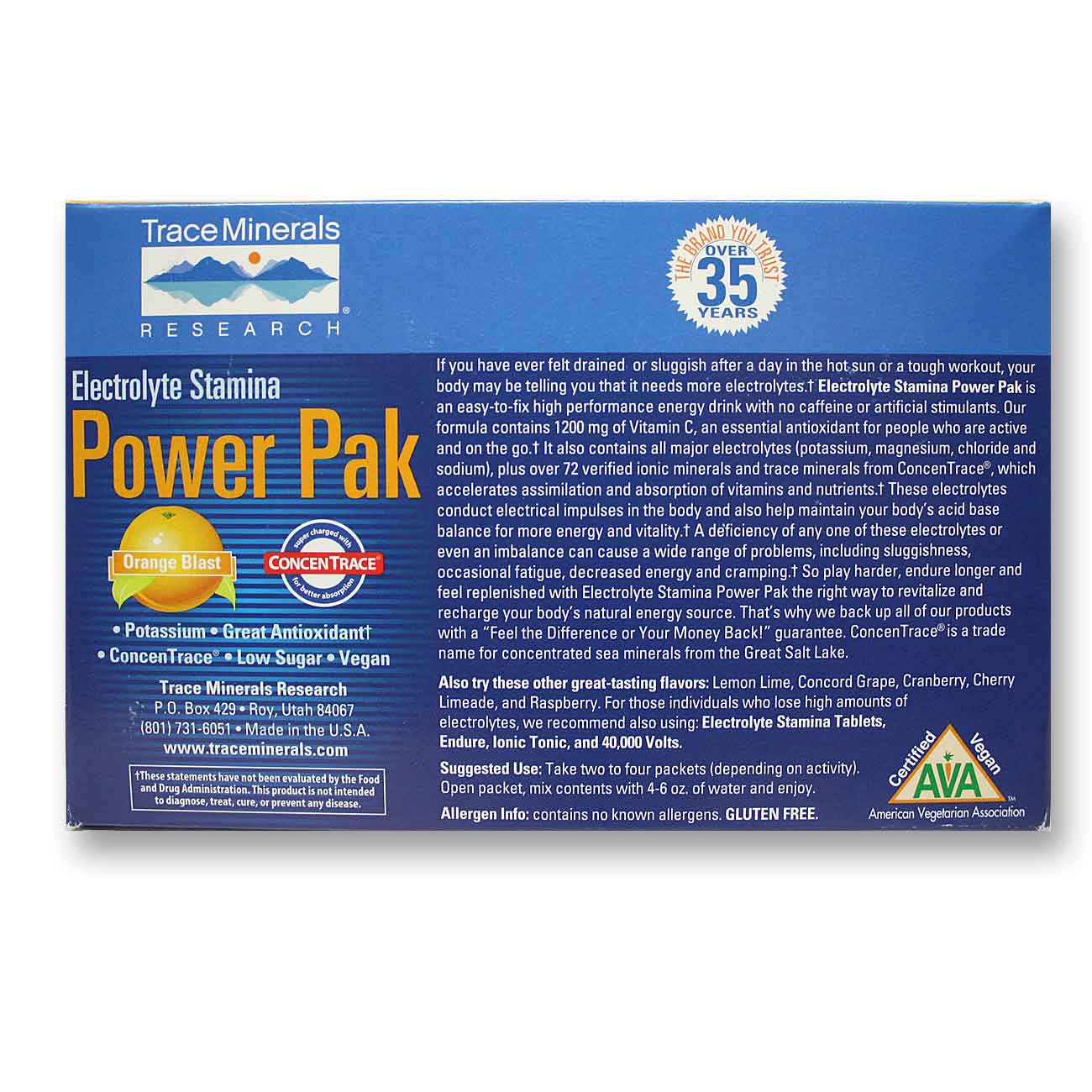 Trace Minerals Research Eletrólito Stamina Power Pak Laranja Explosão 32-8,9 g Pacotes