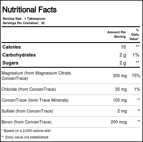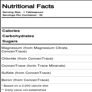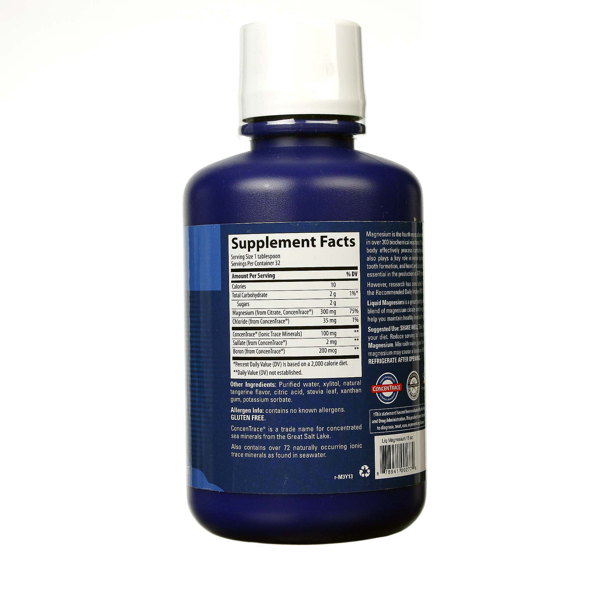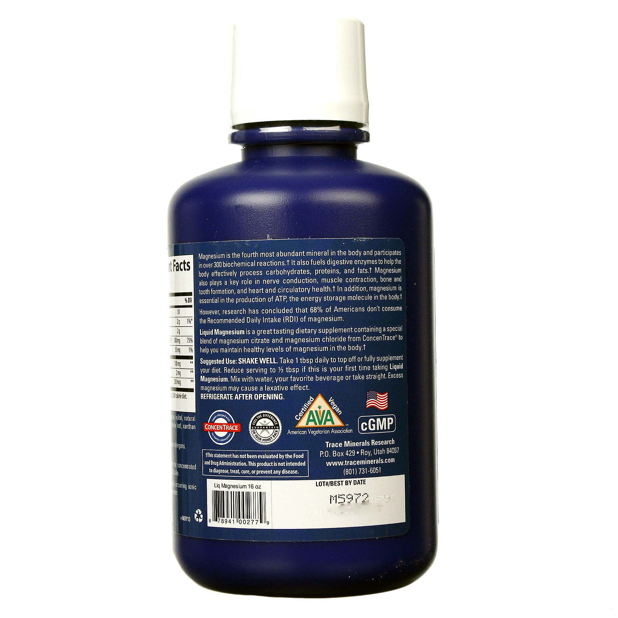 Trace Mineral Research’s Liquid Magnesium provides 75 percent of your recommended dia serving of magnesium plus moue than 72 naturally occurring trace minerals from seawater.