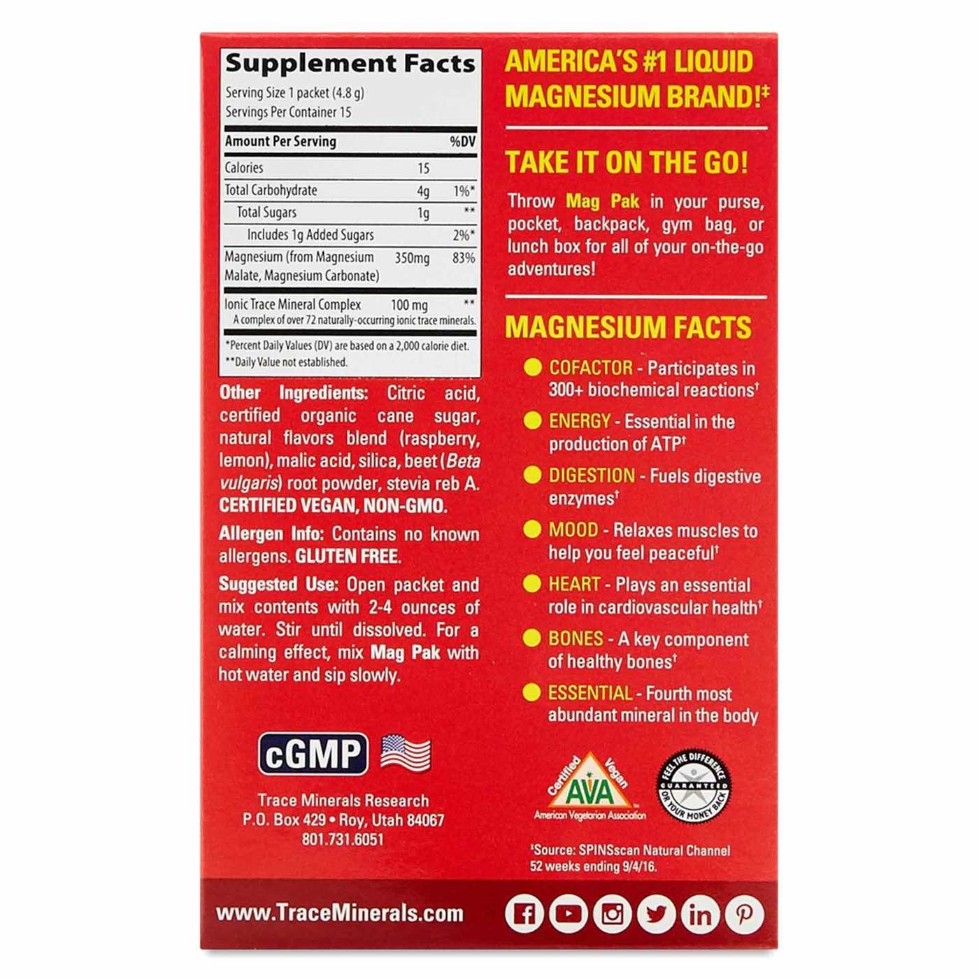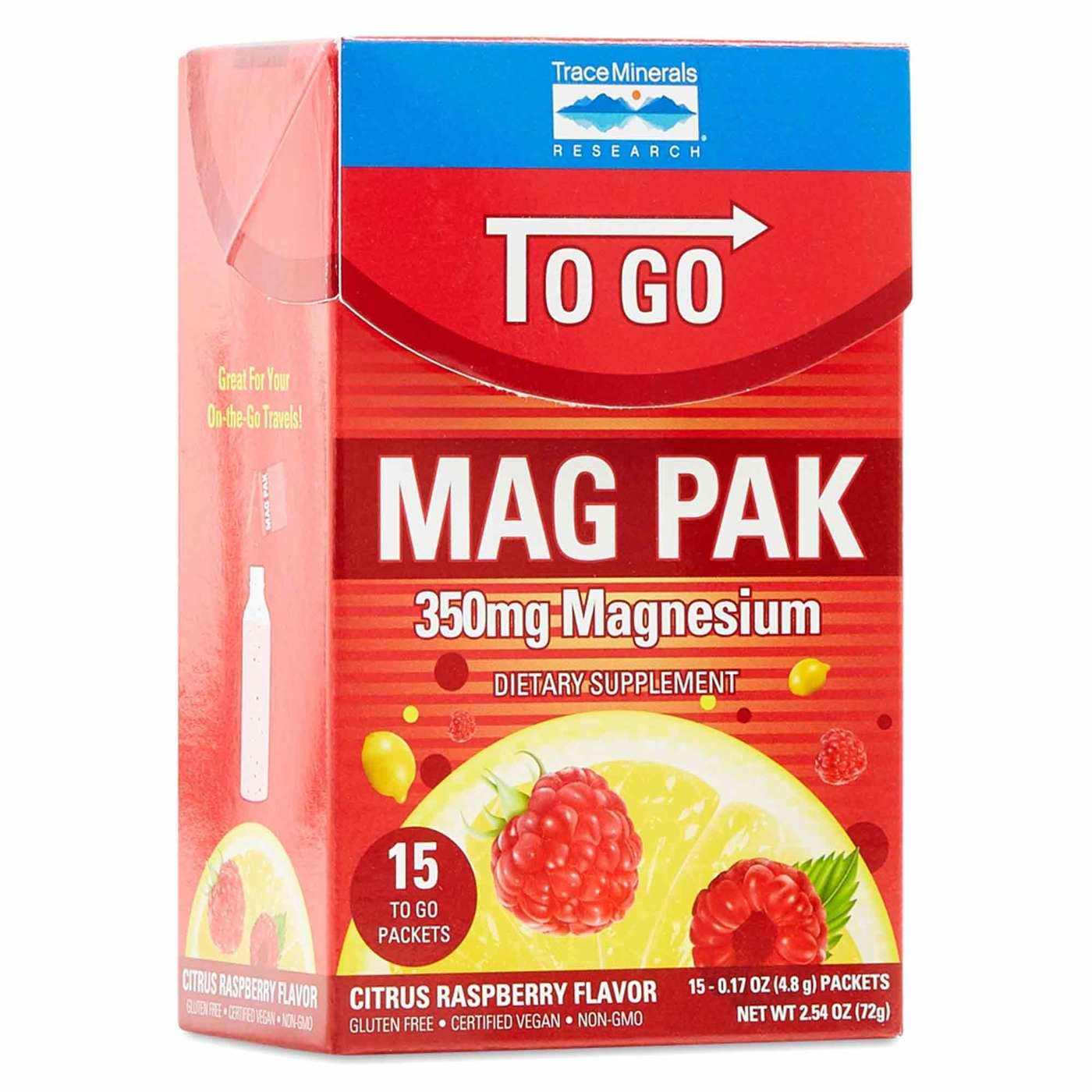 Trace Minerals Research Mag Pak To Go Citrus Raspberry 350 mg. – 15 Packets
