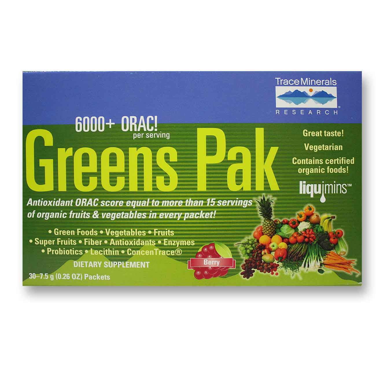 Trace Minerals Research Verdes Pak Berry 30 Pacotes