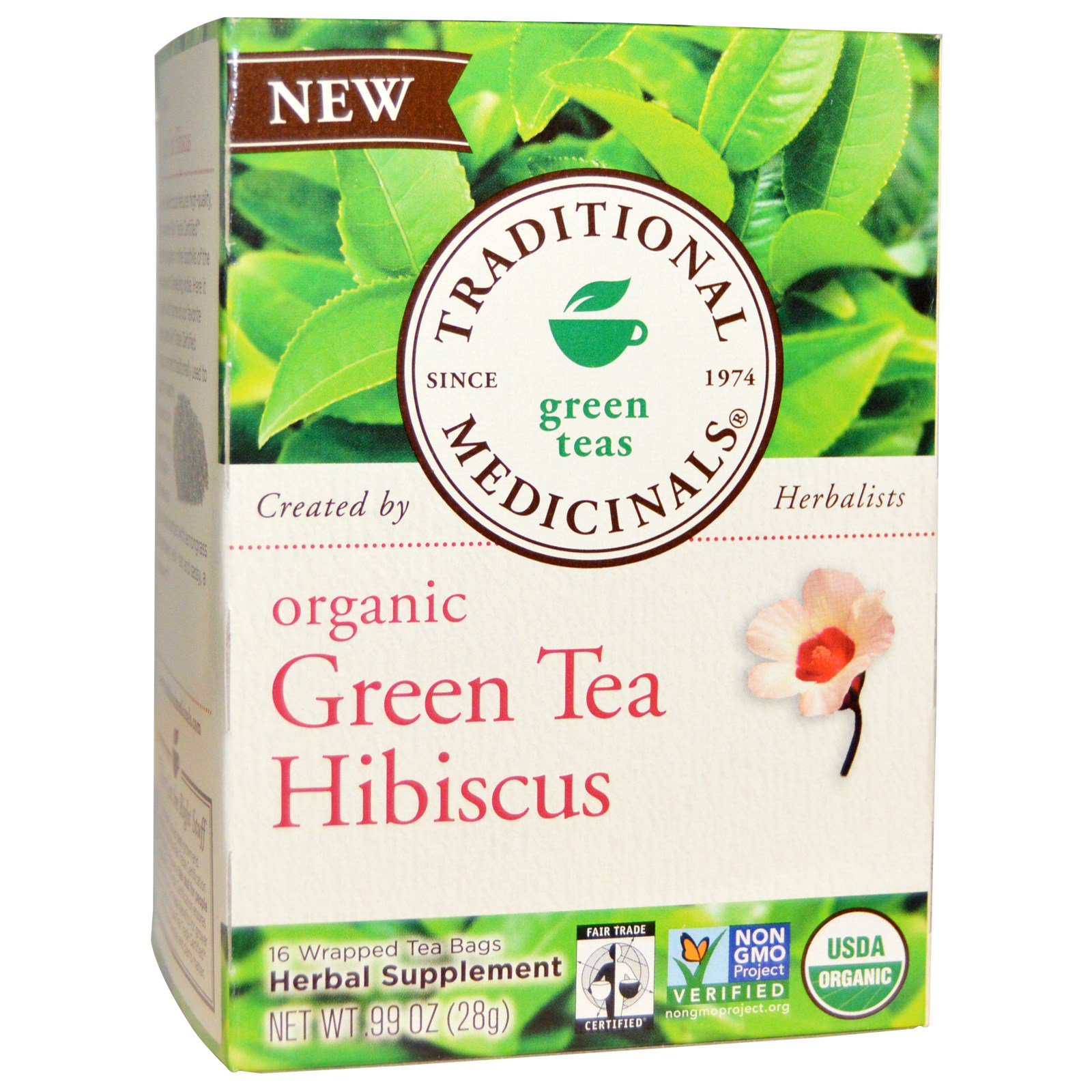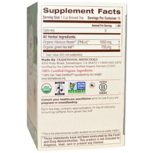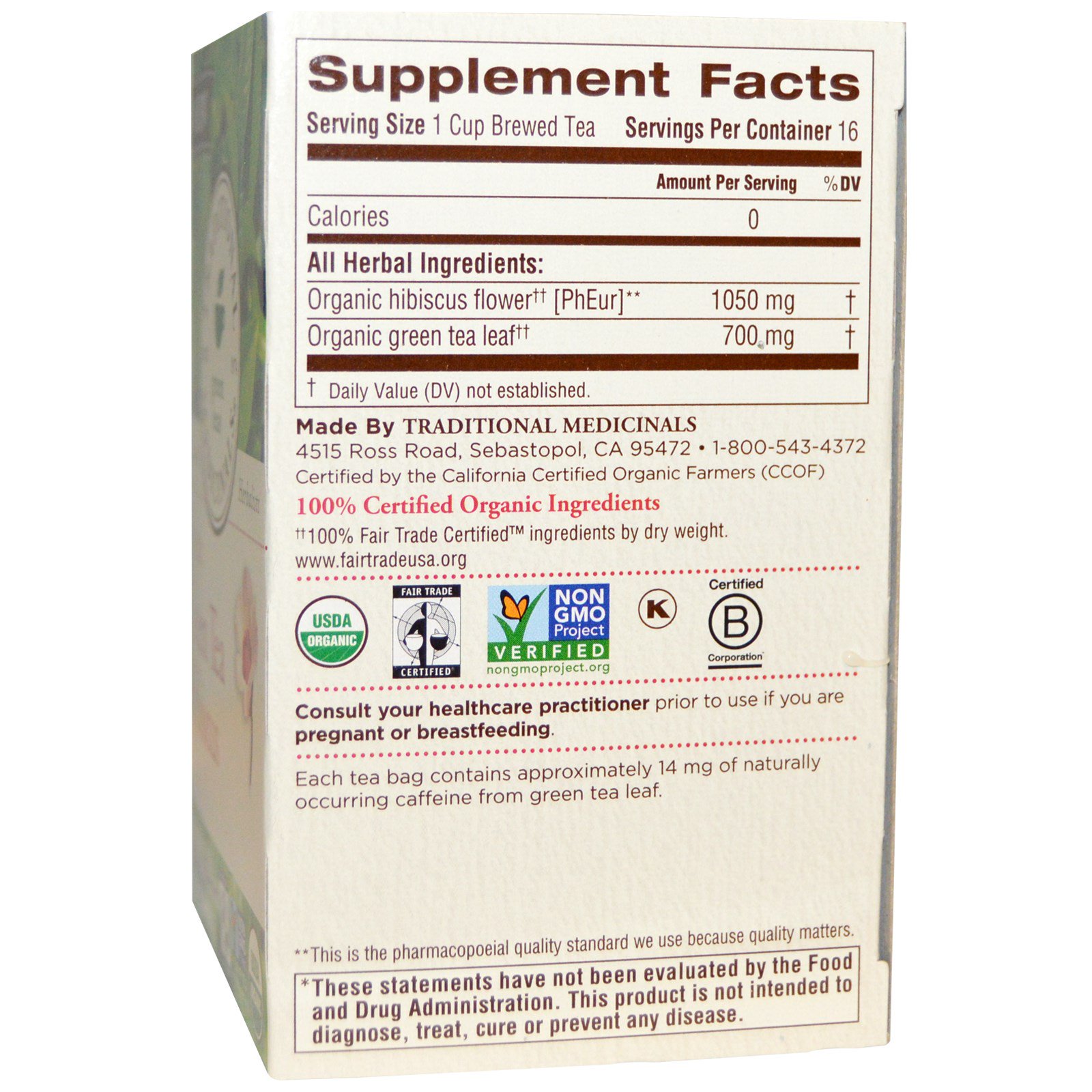 Traditional Medicinals, Chá Verde Orgânico Hibisco, 16 Saquinhos de Chá Embalados, 1,13 oz (28 g)