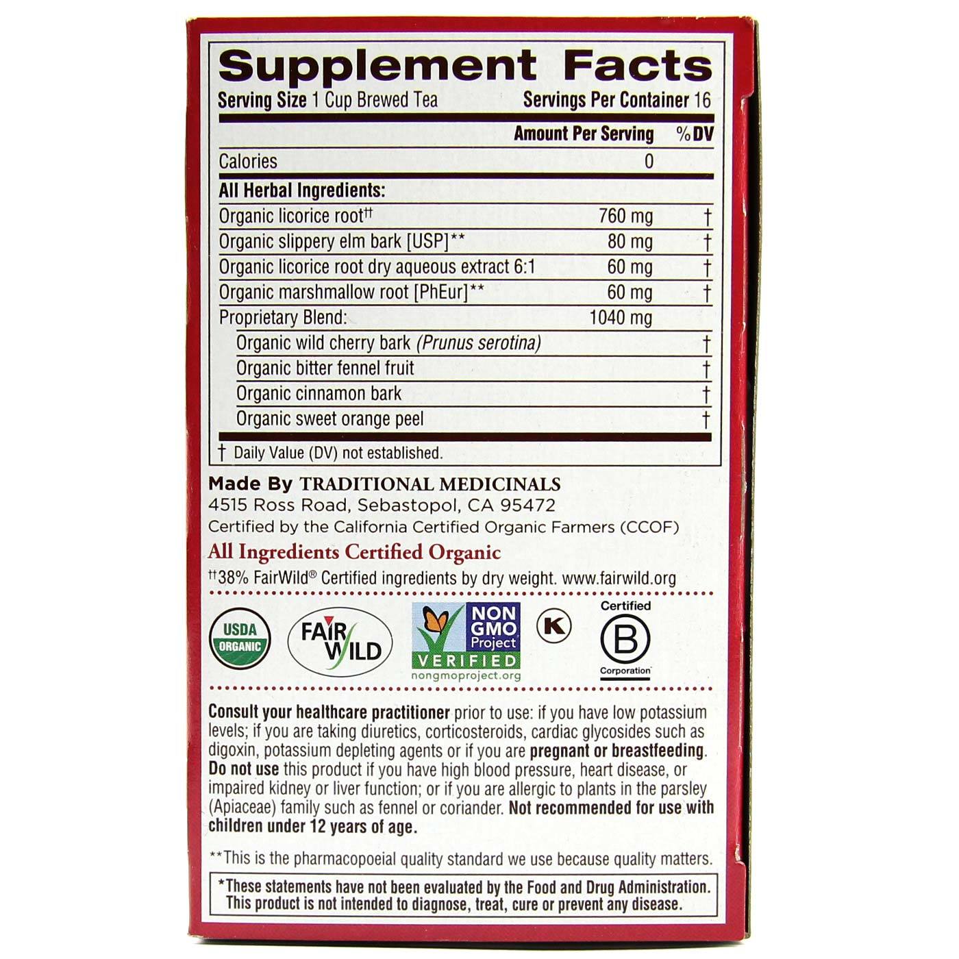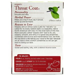 Nota: How does it taste? It’s sweet, aromatic, earthy and viscous (which allows the herbs to coat your throat). Children love the sweet, soft and soothing feel of Throat Coat.