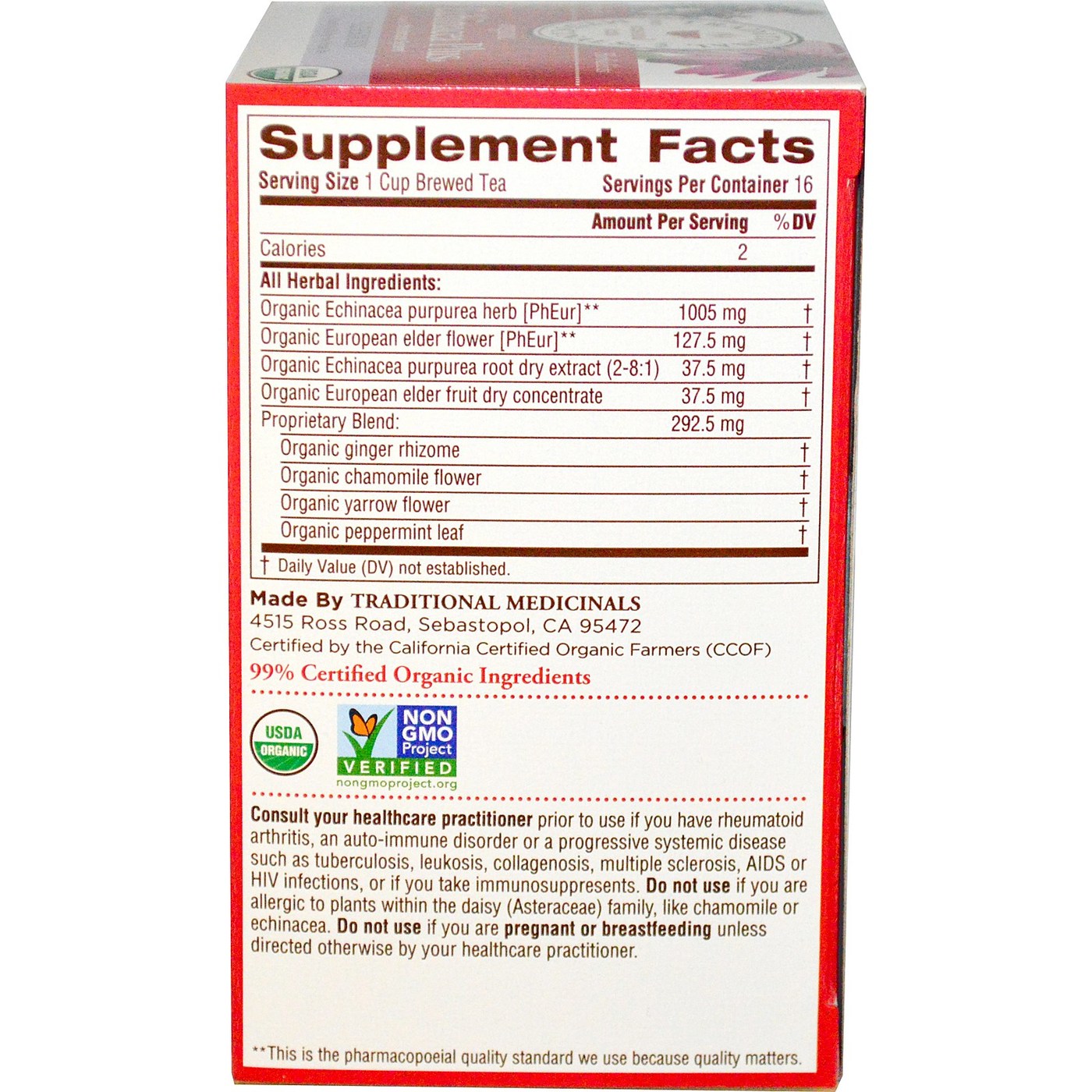 Traditional Medicinals Chá OG2 Equinácea 16bag Elder