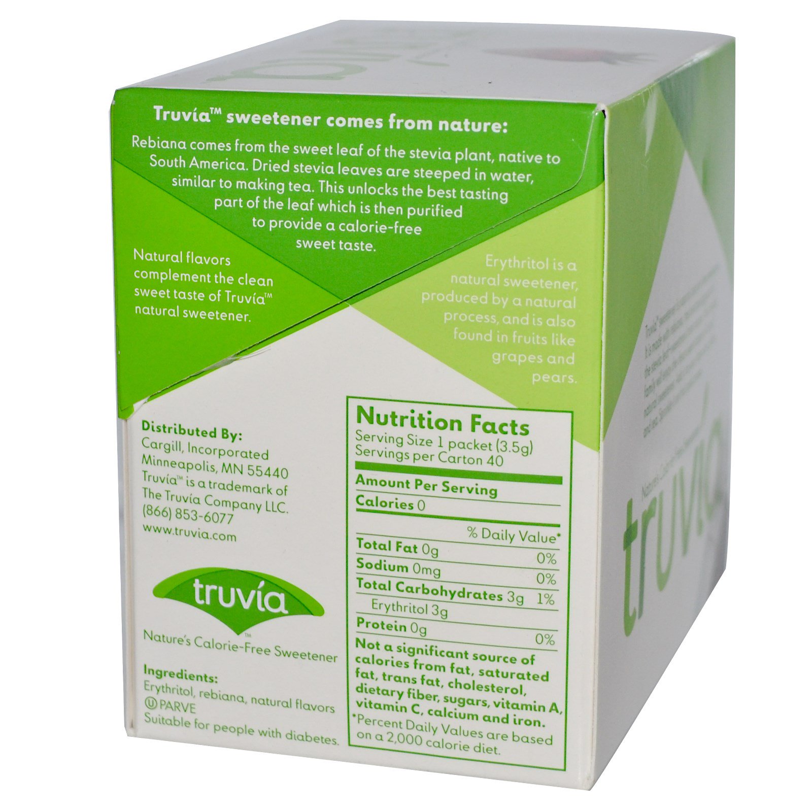 A Truvia é um adoçante livre de calorias. É feito a partir da Rebiana, a melhor parte da folha de stevia. Sua família inteira apreciará o puro sabor do Adoçante Natural Truvia.