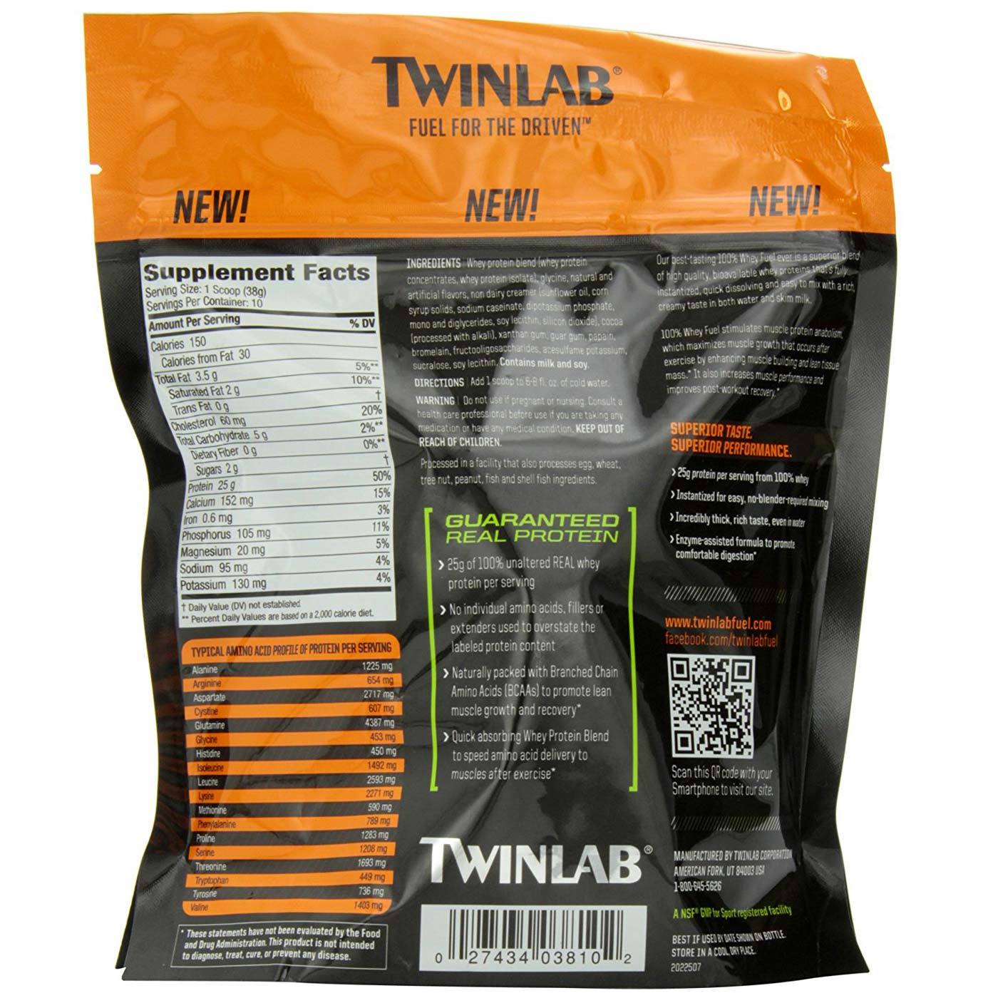 Twinlab 100% Whey Fuel, Chocolate – 380 g