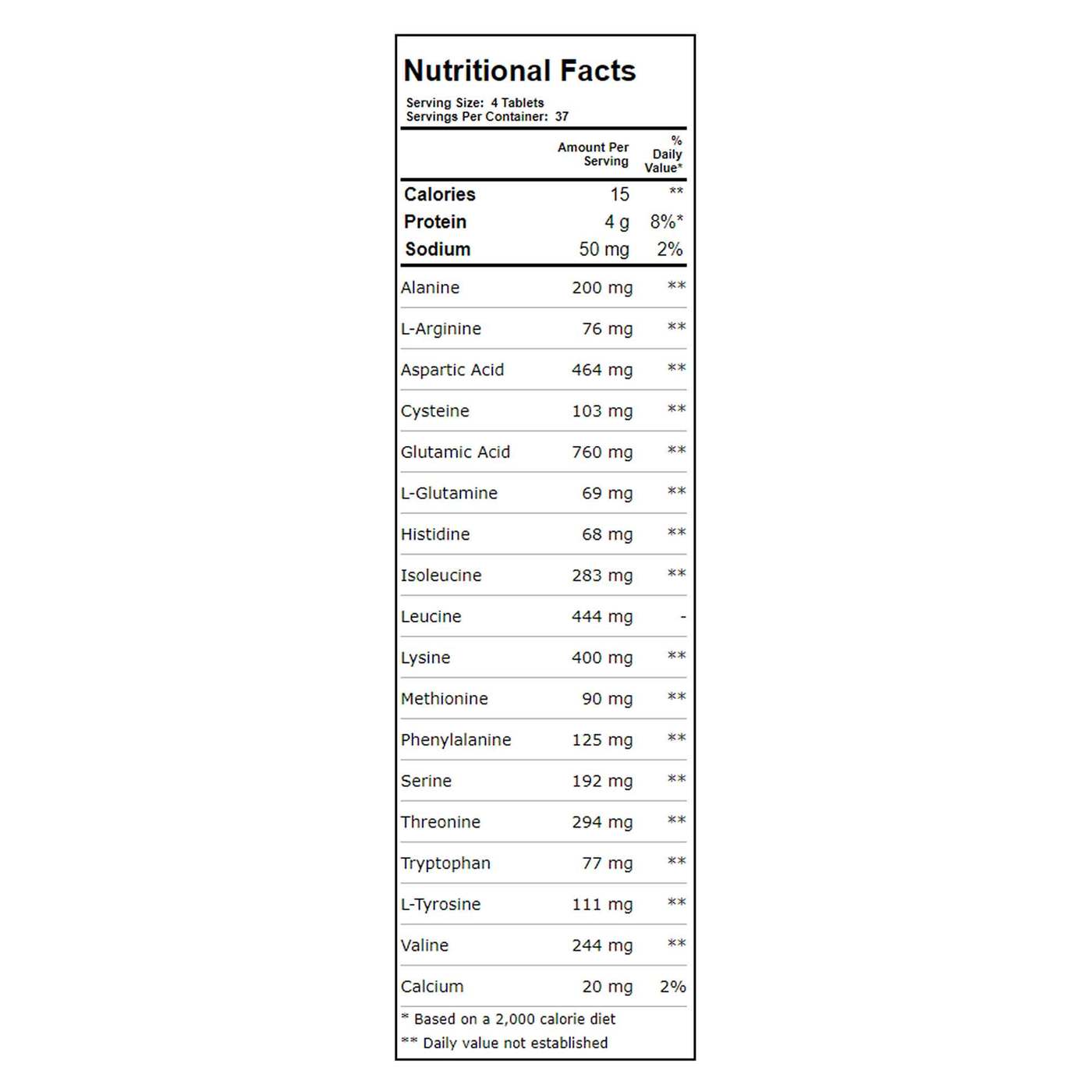 Amino Fuel 1000 mg from Twinlabs has 15 calories per serving.